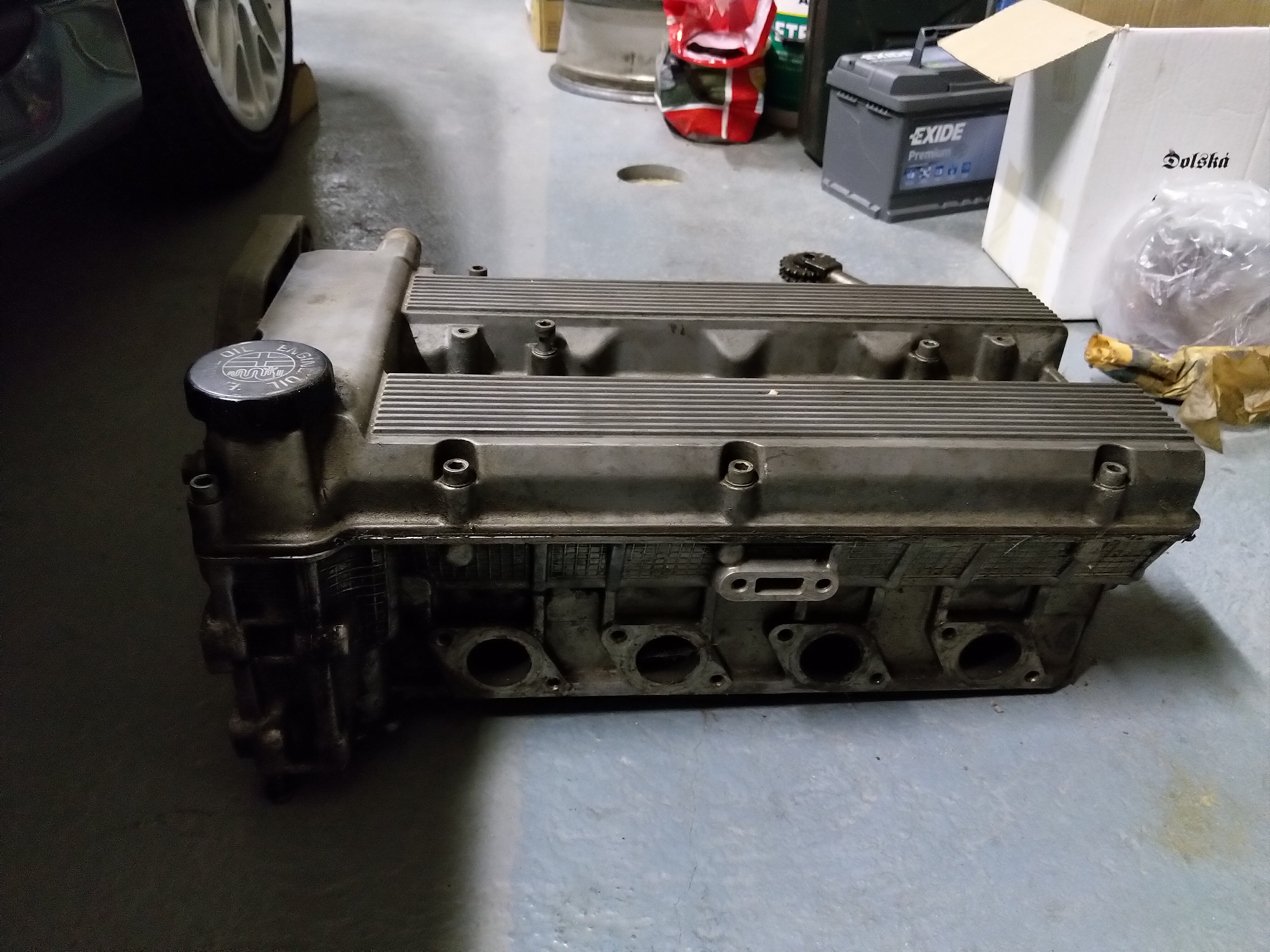 2) U tý samý hlavy se našla vačková hřídel. Jestli tomu ale rozumím, TS 8V má DOHC rozvod, takže jsou tam hřídele dvě, přičemž na každý jsou čtyři palce, aby to vycházelo na počet ventilů. Tahle má palců osm, takže k tý hlavě patři nemůže, ne?