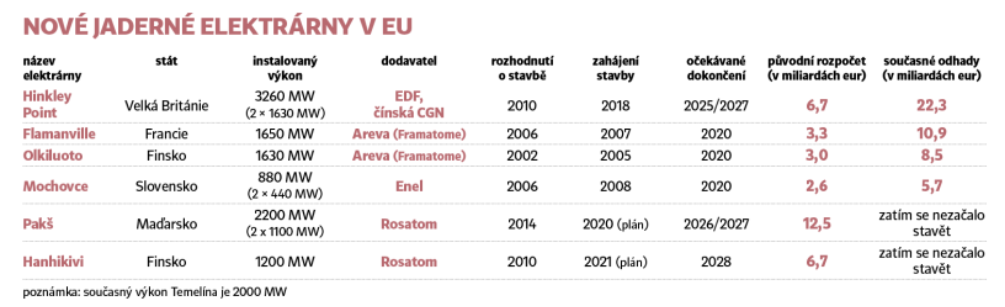 jen tak pro zajímavost, tabulka s aktuální výstavbou jaderných elektráren.... (zdroj: ihned.cz) Babiš na to začíná tlačit, tak uvidíme.... jako teda ta nejlevnější stála nějakých 170 miliard korun..... slušná pálka.... :D ale osobně proti tomu nějak zaujatý nejsem.... každopádně mě fascinuje jak se to teď srovnává s tím, že "fotovoltaika nás ročně stojí XY miliard" ale to je úplný nesmysl, protože ty miliardy nás stojí ten podvod který se kolem toho stal, ne ty samotné soláry.....