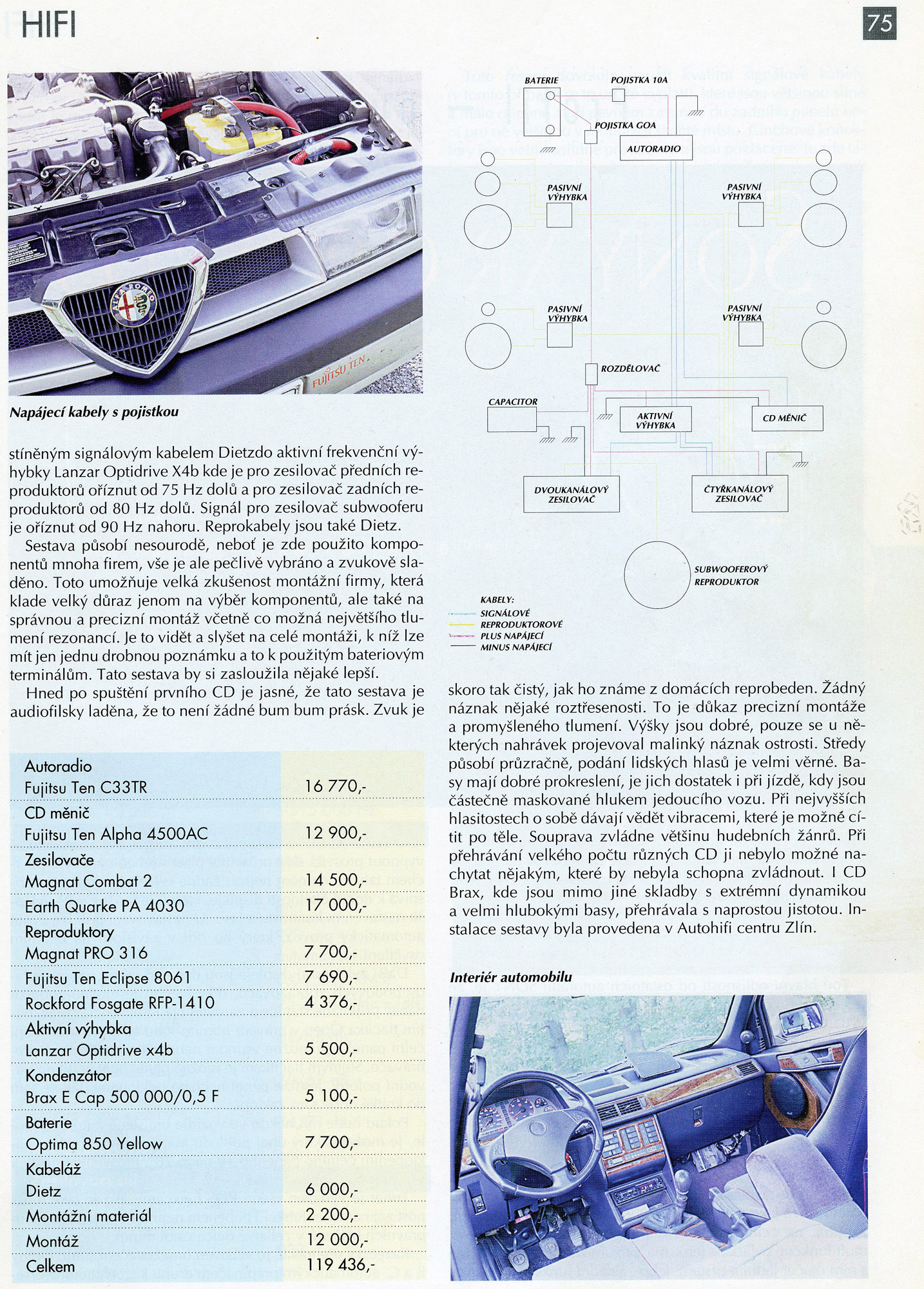 Při probírání se starými časopisy jsem narazil na tento článek o ozvučení dieselové 155. Není to tedy přímo text o Alfě, ale v perexu o ní píší celkem hezky :D (magazín HiFi, rok 1998)