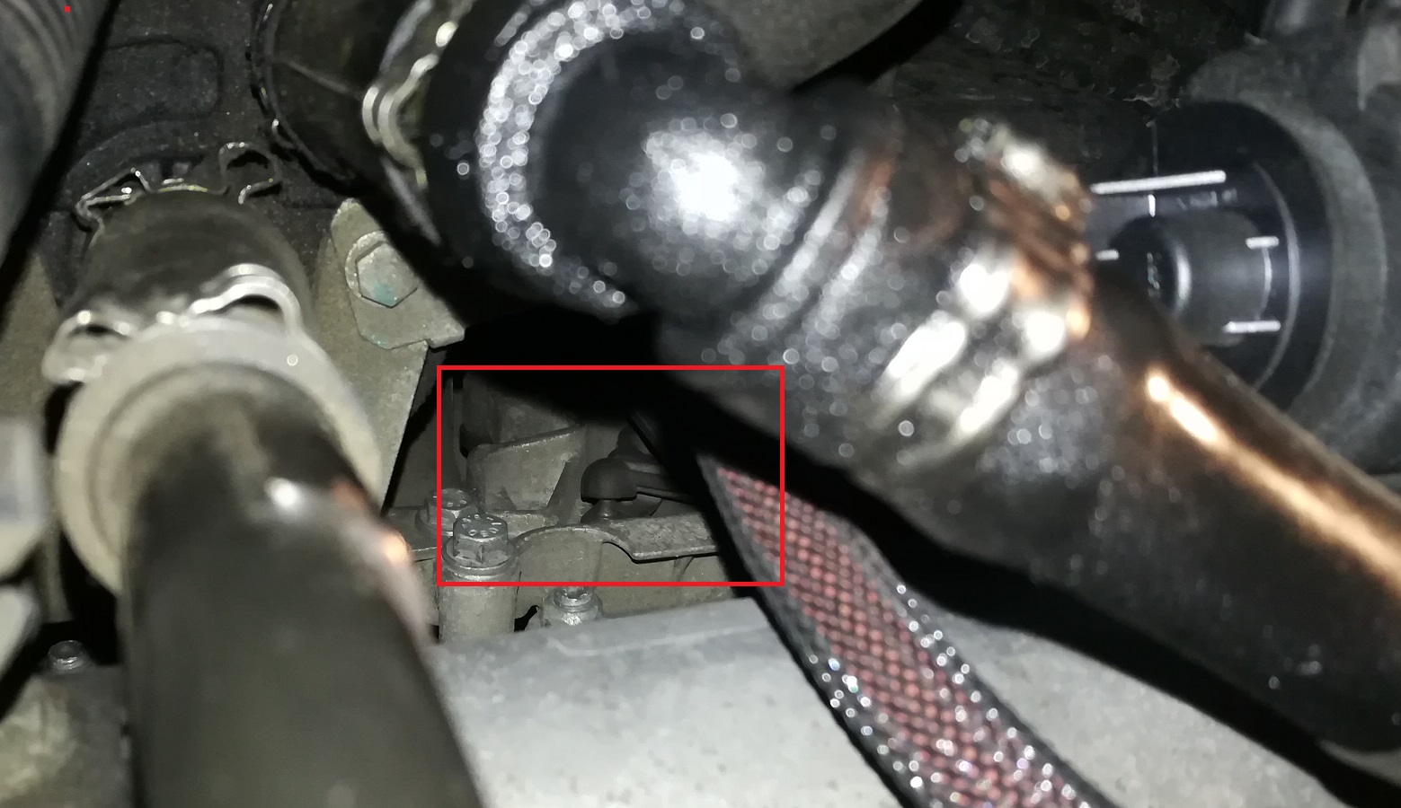 BTW toto je kloub táhla vířivých klapek na motorku? Pohled zezadu na motor.