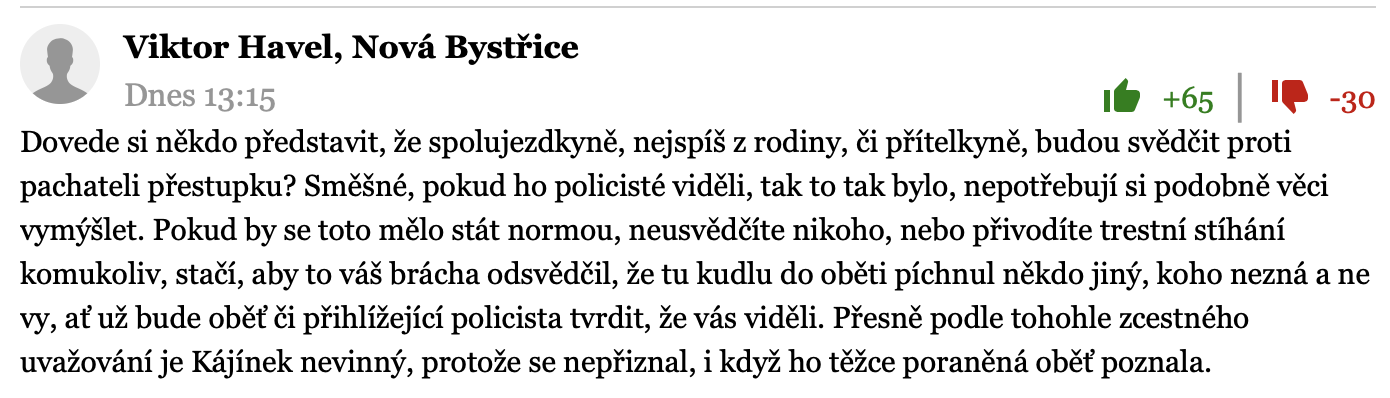 Jinak jeste teda ukazka toho, jak se u nas dela novinarina. Staci vynechat 2 podstatny detaily a hned to pro luzu vyzni tak, ze pachatel je jasny a ze se urcite jen vymlouva...