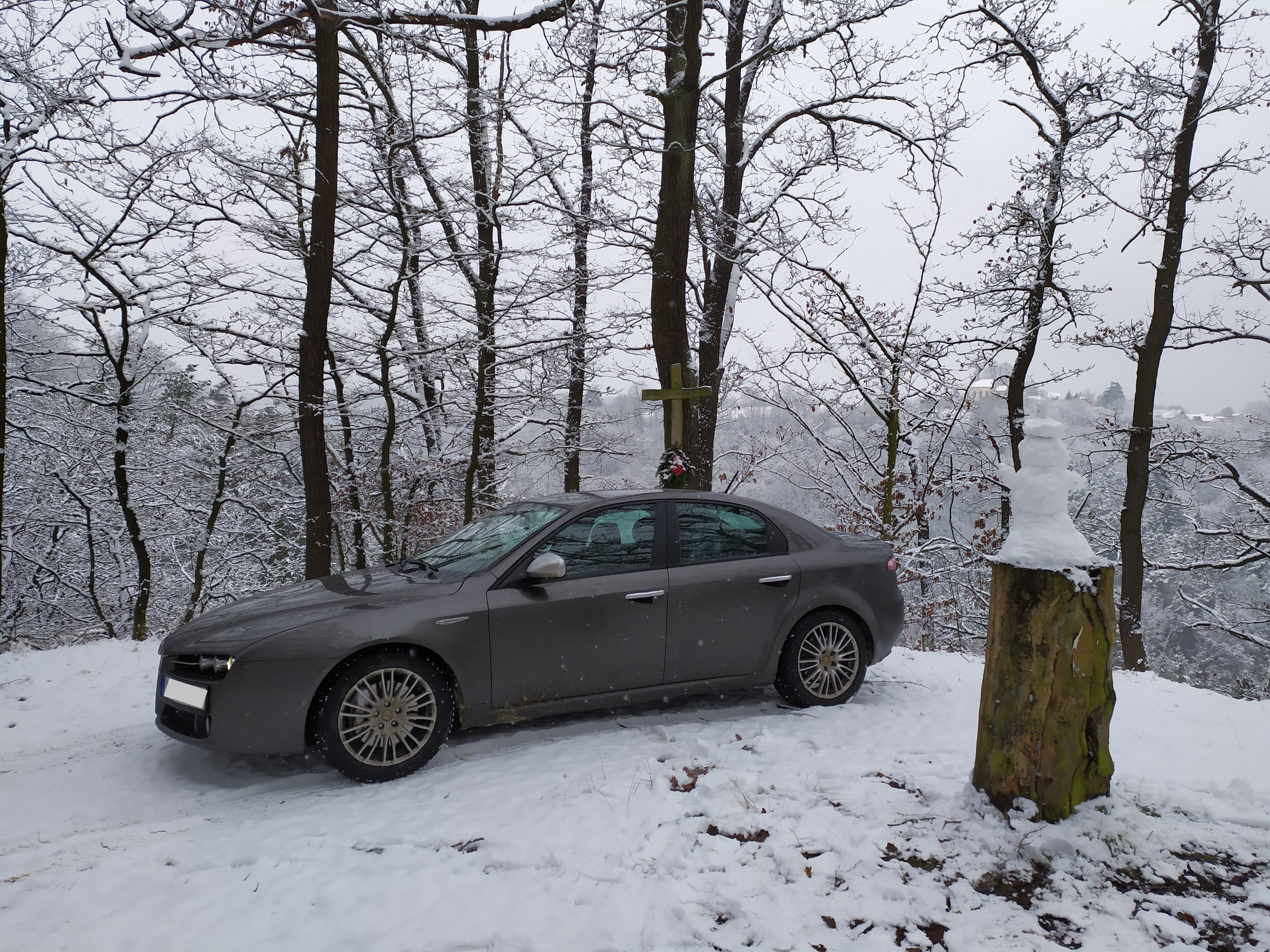 Dlouho se nic nerozbilo, tak aspoň mezi svátky začala rosit tlaková hadice posilovače řízení z čerpadla do převodky. Ve firmě specializované na hydrauliku jsem ji nechal zrepasovat, rovnou jsem vyměnil i motorový olej (Millers Oils), dal nový výpustný šroub do vany a samozřejmě olejový filtr. Alfa u mě před koncem roku slavila už 3 roky ve službě. Blížíme se k metě 260 tisíc kilometrů, užíváme sněhu, který po delší době napadl i v nížině a dokonce se i nějaký čas udržel. Přihodím pár fotek špinavého auta na zimákách, naleštěných s letními turbínami je tu dostatek