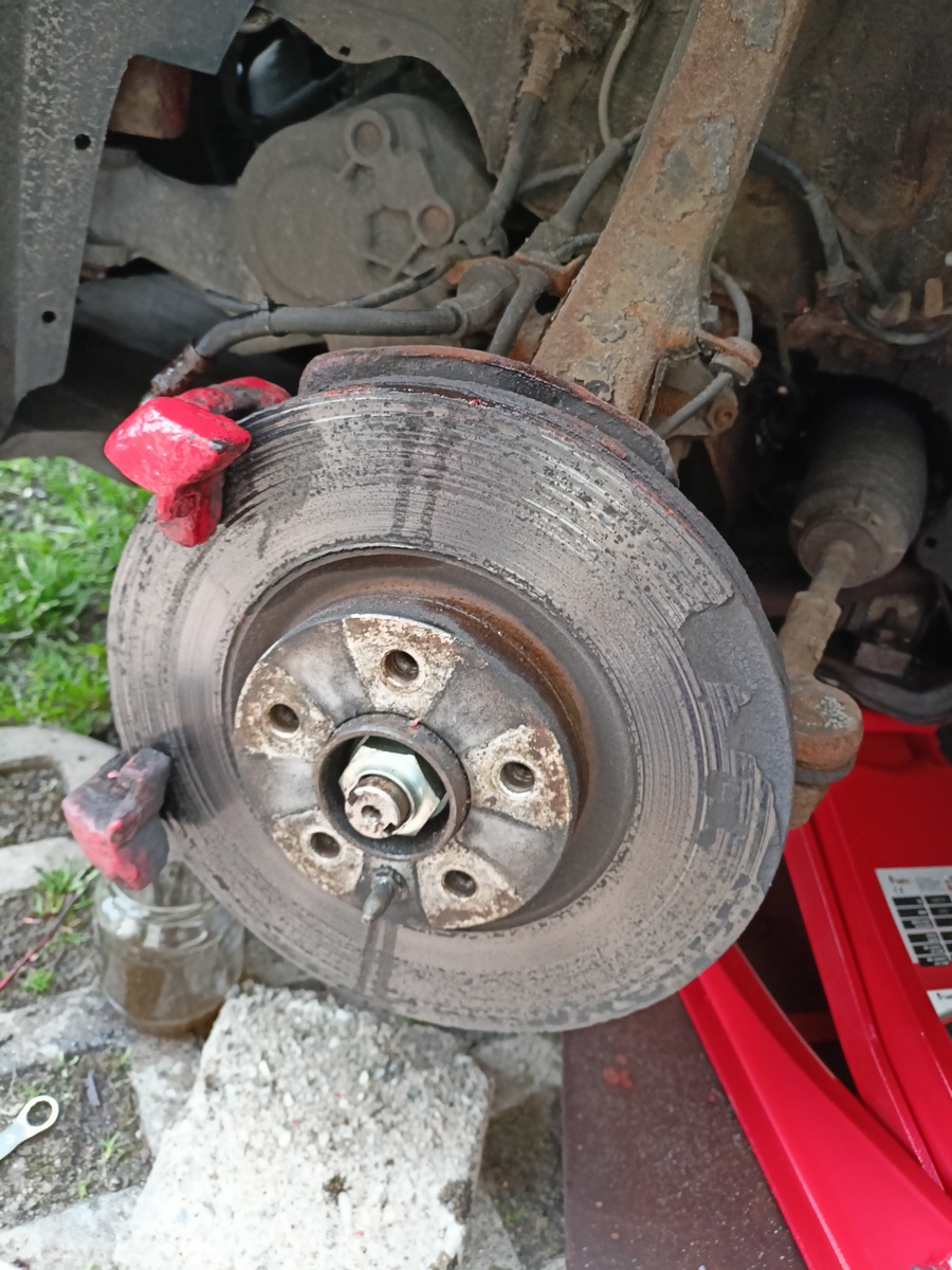 ,No a abych si holku aspoň malinko naklonil, aby mě už přestala trápit, tak jsem aspoň přetřel přední brzdiče