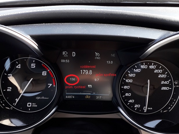 výjimečně jsem se projel po prázdné dálnici.... tempomatových reálných 155kmh znamená spotřebu lehce nad 9 litrů, měřeno tedy na trase cca 80km a ten tempomat jsem vypnul snad jednou.... Giulia 200PS na 17"....