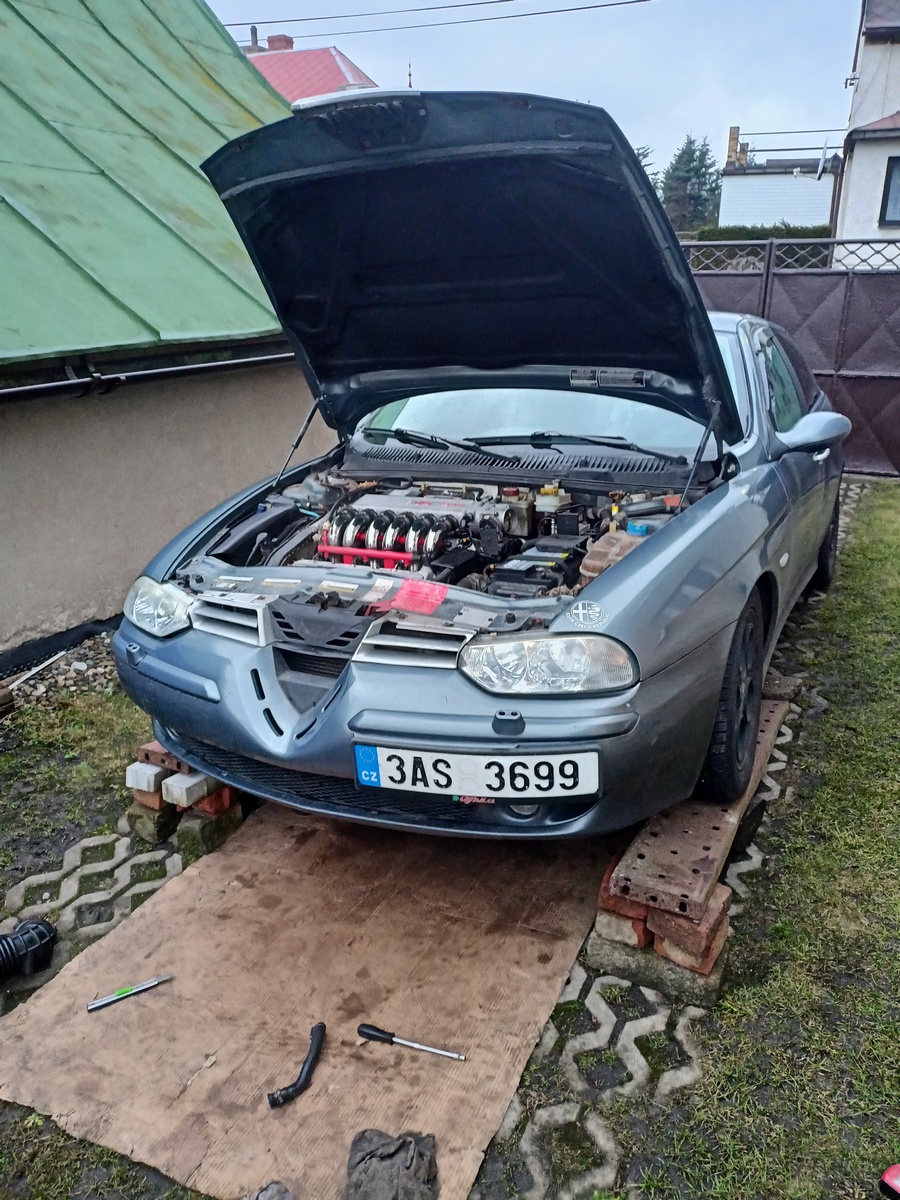 A pokračujem, pár týdnů zpátky jsem objednal nový gumy dopředu, to bylo v neděli, a v pátek večer, když jsem se vrátil na plac, tak pod alfou červená louže, a nebyla to voda, byl to olej