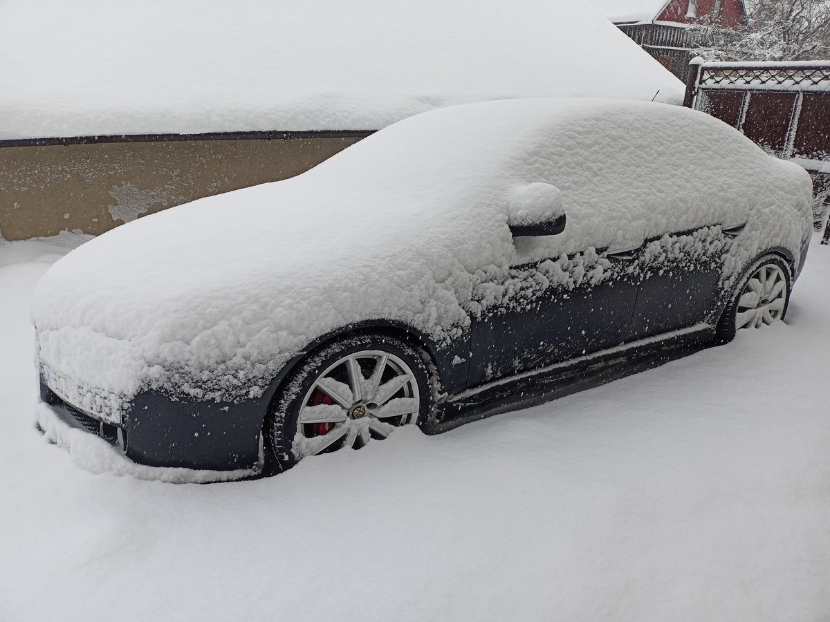 Baterka už úřaduje v autě, původní 63 Ah do víkendovky v garáži nejspíš stačila, ale pro parkování venku se stáním přes týden v tomhle hnusu mi přijde slabá :D .