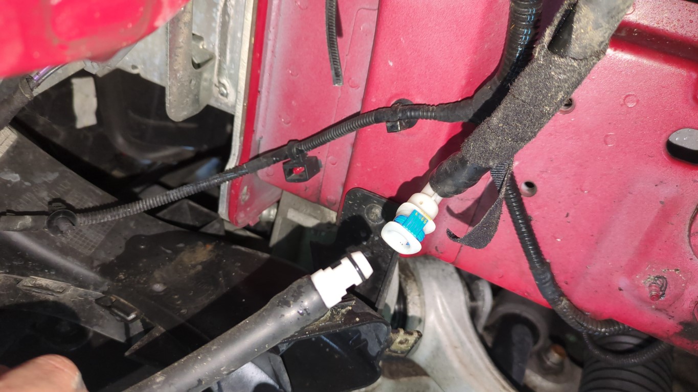 Na G sa mi sustavne rozpaja rychlospojka ku xenonom a vytecie mi cela napln... Pri natlakovani odstreli modra poistka a uz je to. Pristup zly, len spodom cez plasty a ruky dorezane. Potreboval by som niekde zohnat ten hadicovy protikus do L-kolena. Musi to mat na sebe O-kruzok. Koleno je bezne za 2 E, ale protikus nikto nema. Samozrejme mozem tam dat pevnu spojku, ale kvoli autenticite by som radsej original funkciu.