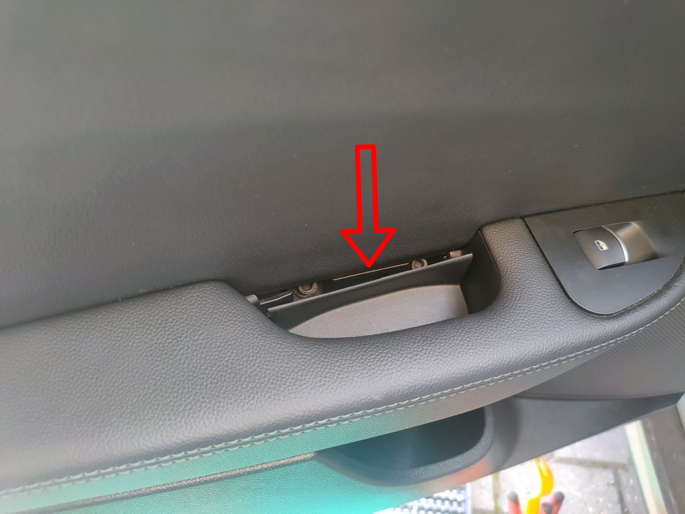 Tohle byl pro mě největší oříšek.... Je třeba připojit ovladač okna a s oknem sjet tak, aby po sejmutí těchto dvou krytek bylo vidět uchycení okna ke stahovačce (je to cca polovina):