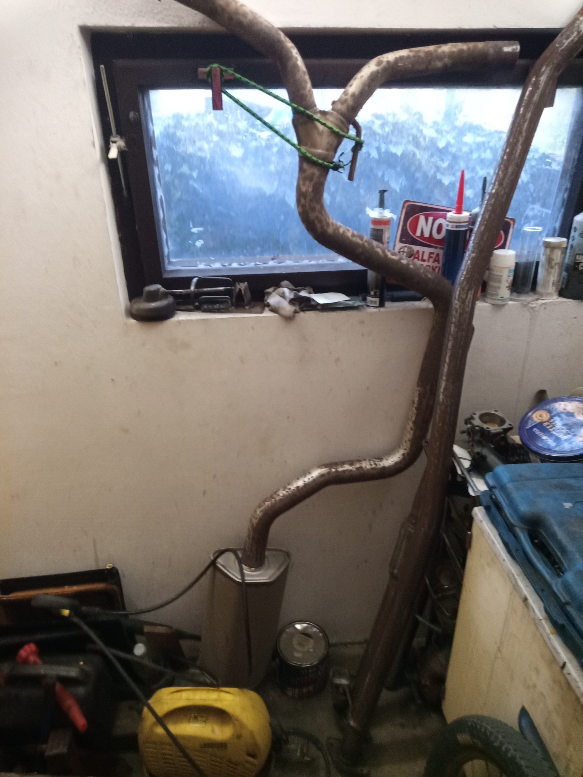 z lepšího soudku -vyškrábl jsem první a střední díl výfuku z 2l nafty, průměr turbky 55mm místo 50mm a hlavně žádnej středovej tlumič a origo vzhled... což se na stk hodí