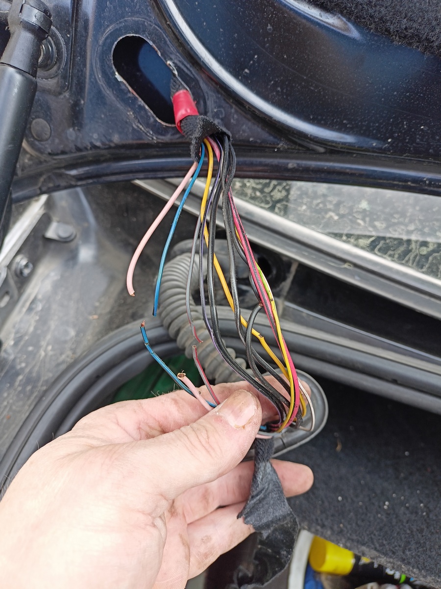 Taky jsem se konečně dokopal k opravě drátů v průchodce do kufru. Když jsem viděl tu spoušť tam, tak jsem se rozhodl jít cestou kompletní výměny všech
