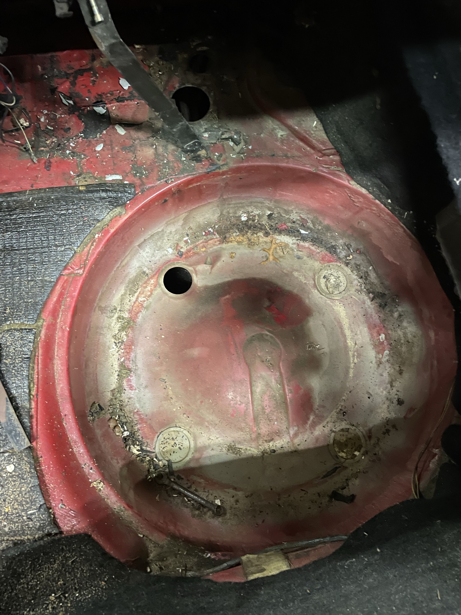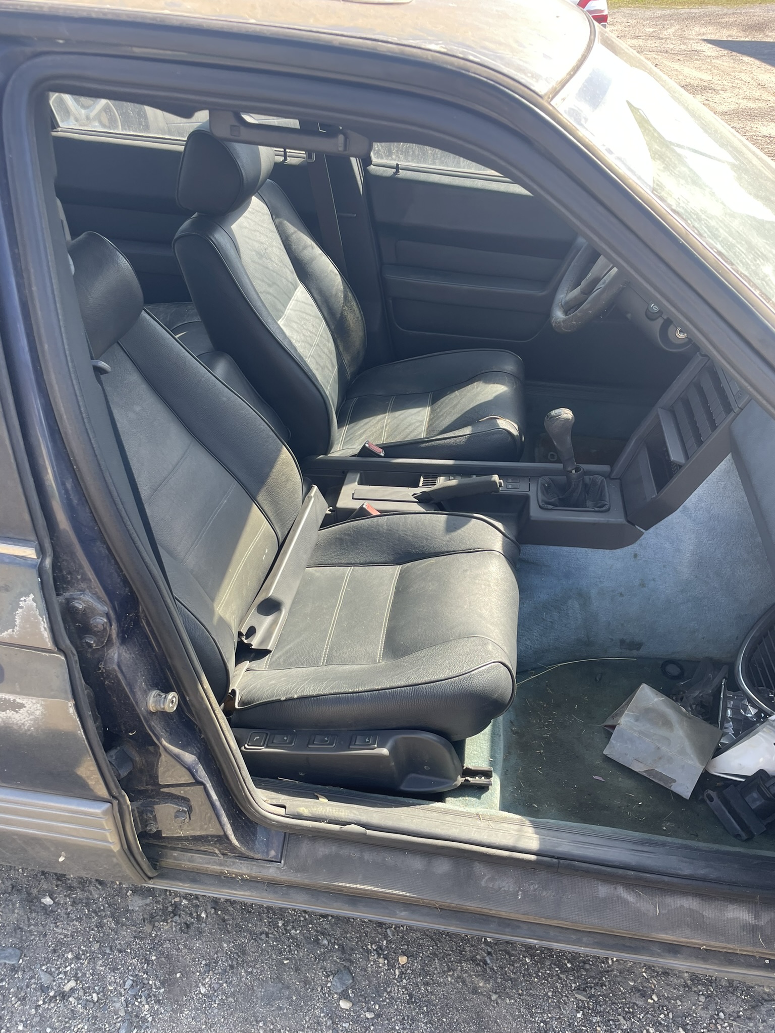 Aktuálně mám je fotky "před" a ty jsou docela děsivý. Motor vylepšený o záchodovou trubku, vybydlený interiér s myším hnízdem, domorobo oprava podběhů. Auto mělo z výroby klimatizaci, část klimy v interiéru je v pořádku, v motorovém prostoru naopak všechno chybí. Klimakompresor ani trubky nejsou. Ale motor jde protočit a karoserie kromě amaterské opravy podběhů vypadá zdravě. Nechybí ani plechové kryty podběhů vepředu a vzadu
