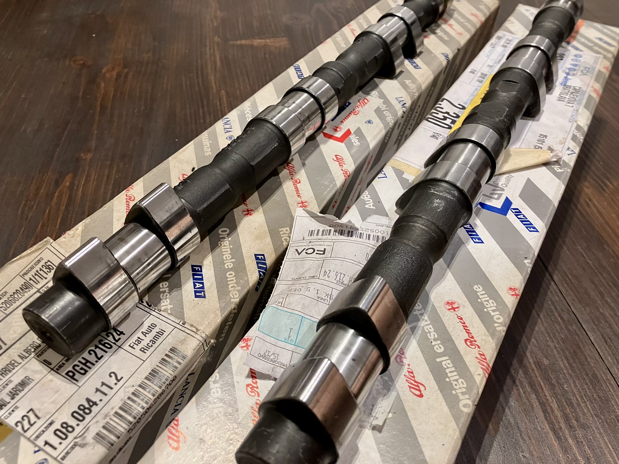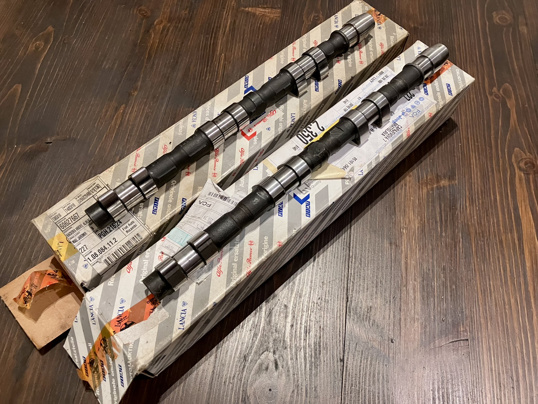 Na predaj originál nové vačky na Busso. Jedná sa o sacie hriadele na prednú a zadnú hlavu. OEM čísla 60627667 a 60627668, určené na 2.5 a 3.0V6 v Alfe 156, 166 a GTV/Spider a Lancia Thesis 3.0/3.2.