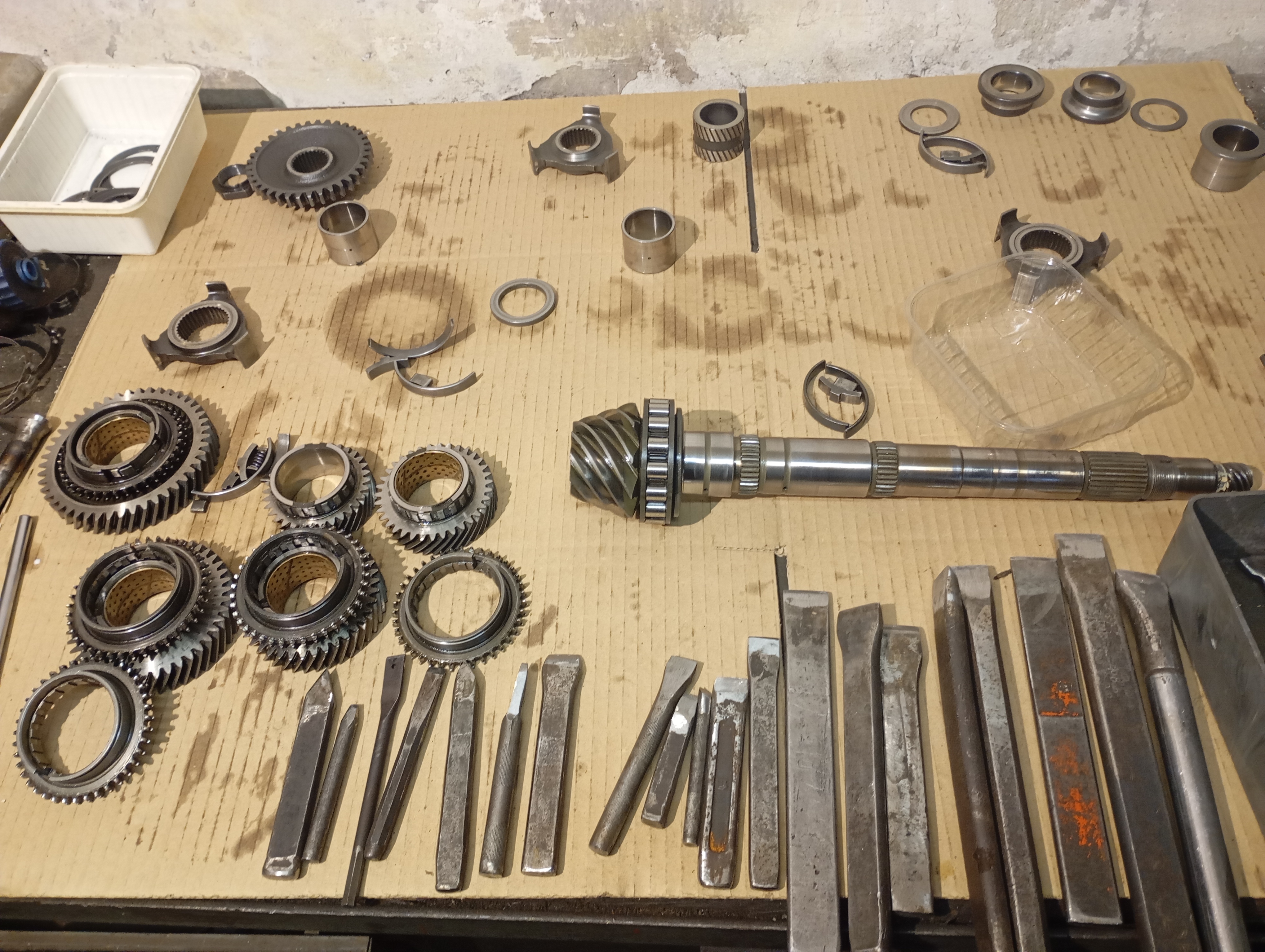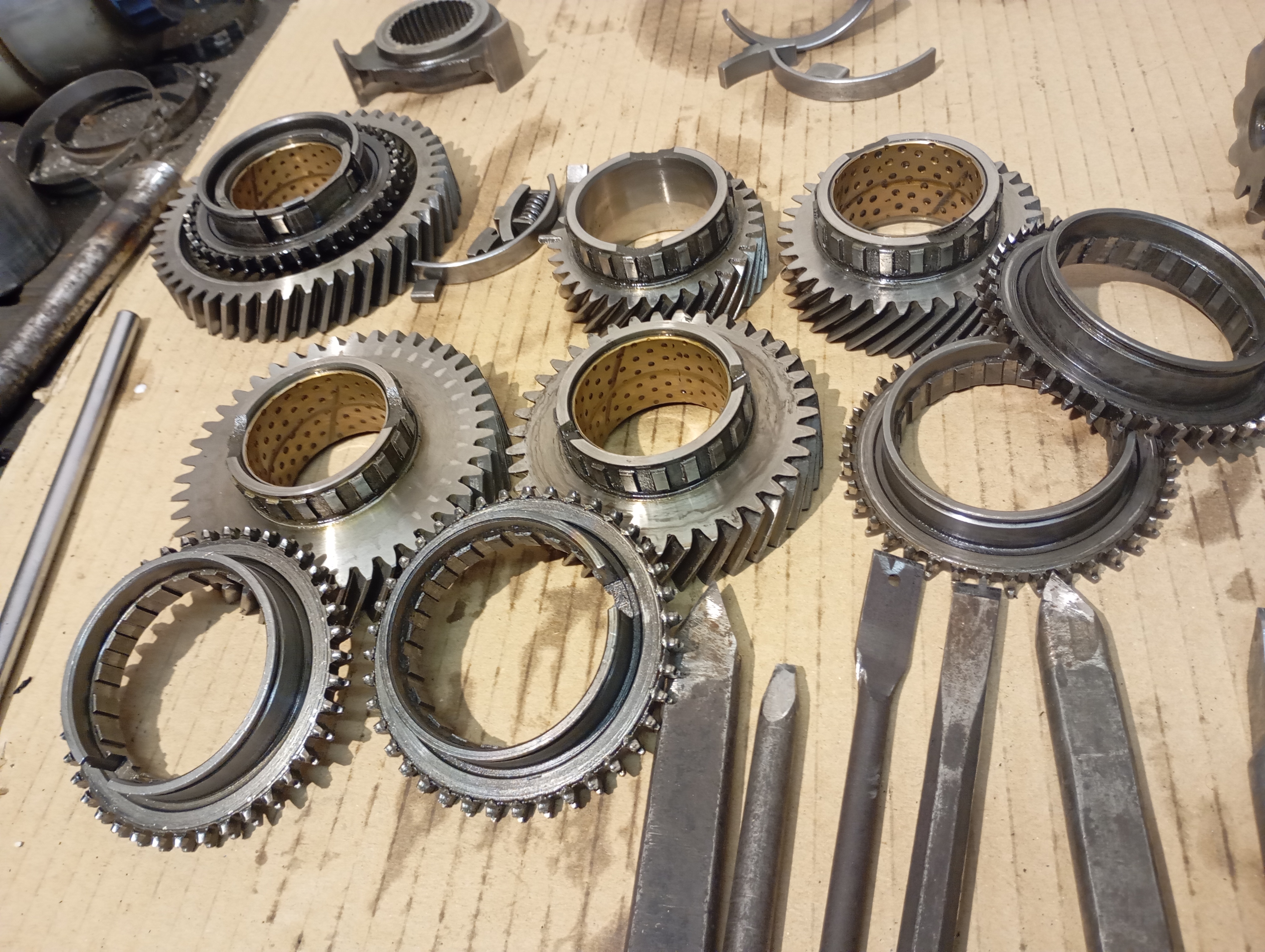 jak se dalo cekat, tak vsechny synchrony kaput a to i na 5ce. Navic byly zniceny i vsechny presuvniky a nalisovane ozubene kola synchronizace.