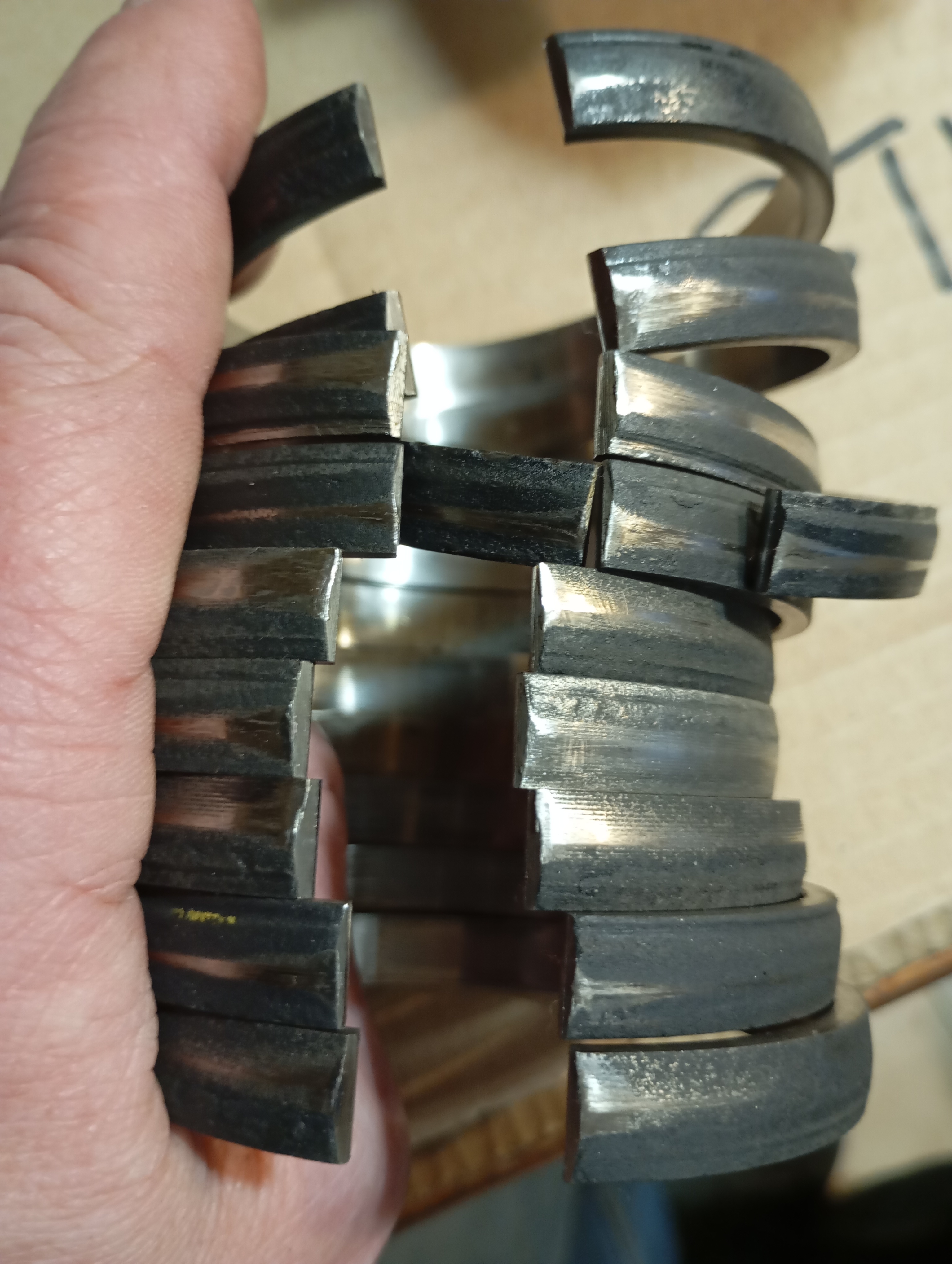 Odlisovat 4. a 5 rychlost jde jednoduse se spravnym pripravkem, obtizne jsou pouze 2ka a 3ka, pokud chcete krouzek demontovat tak aby byl jeste pouzitelny. Musi se opatrne sekackama nazvednout aniz by jste nejaky zub odsekly. Zuby jsou tvrde ale i krehke. Tech 20 sekacku co vidite fakt potrebujete vsechny a neustale se musi dobrusovat... Zde vsech 10 synchronu z obou prevodovek, vsechny na kasu....