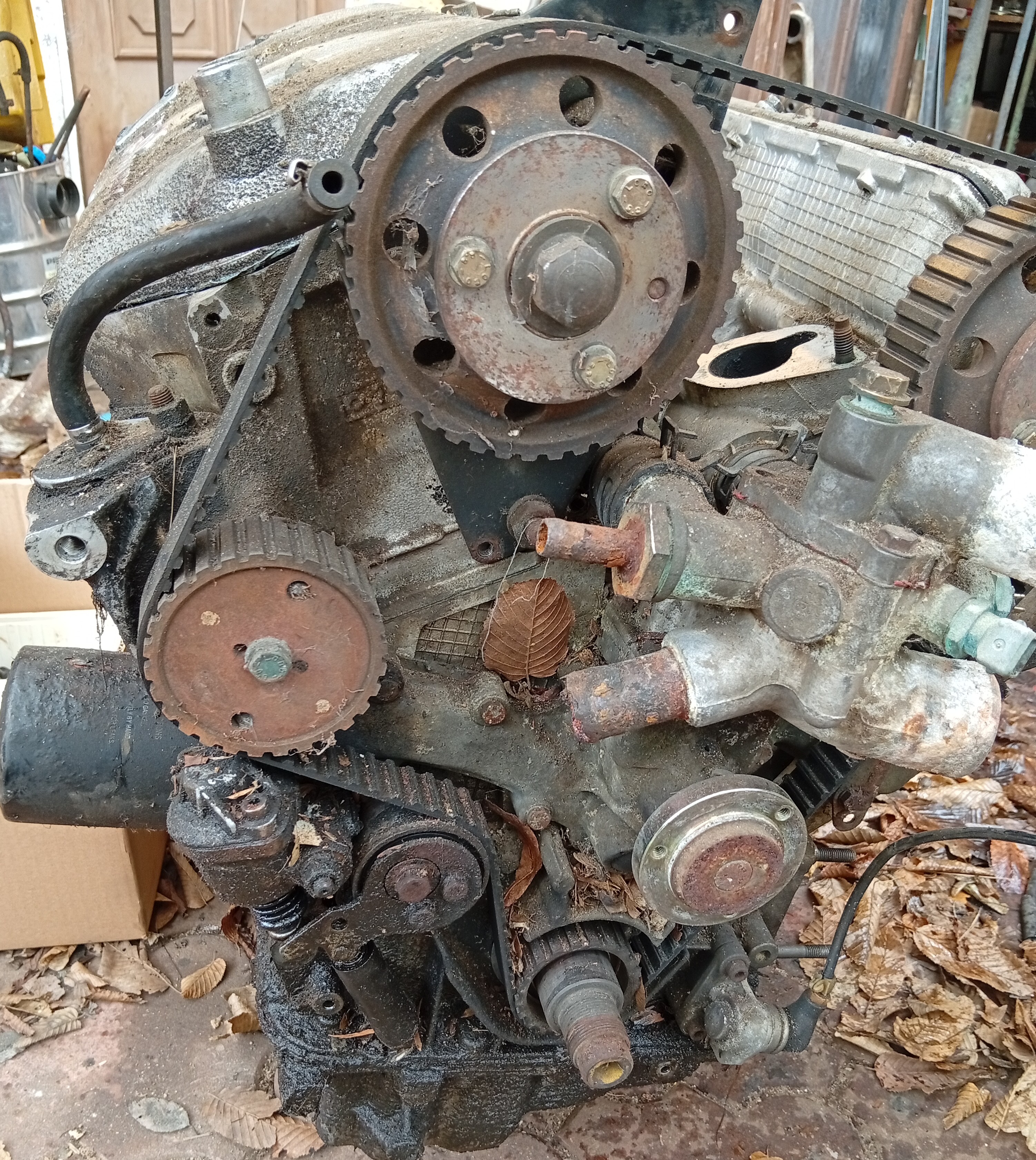 Vysse je videt motor 3.0 z 164ky ktery projde prestavbou na transaxle a zaroven GO. No kdybych ho nevidel na vlastni oci bezet, rekl bych dalsi kandidat do srotu. Ale bezel na vsech 6 a nedelal ani zadne pazvuky. Jinak udrzbove stav katastrofa, bude se muset udelat do posledniho sroubku a to se na nem udelal pred demontazi dvojity vyplach oleje.Ted se objednaji nahradni dily a za par tydnu se do toho pustim....