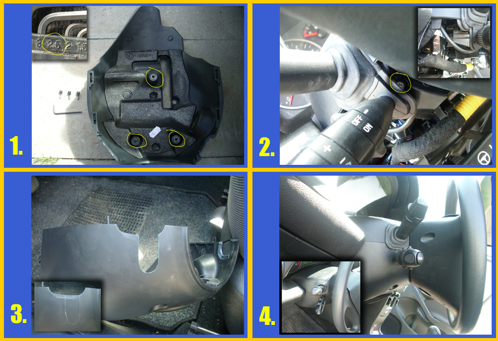 sice jsem to nedělal, ale mám pocit, že se to přichytí okolo te tyče na které je volant. Pak ještě někdo říkal, že je potřeba do plastu pod volantem vyřezat otvor pro páčku.