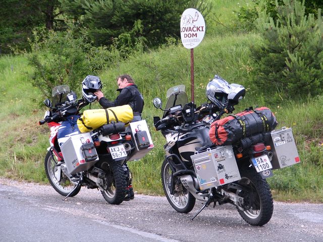Jojo... Teď tam mám Mitas E-07. Nazul jsem je předloni na cestu po Baltu (Litva, Lotyšsko, Estonsko). Chtěl jsem je vyzkoušet. Jsou takovej dobrej kompromis na cestování po asfaltu a občasnou polňaku (ale nic hardcore). Do zemí, kde nevíš jestli náhodou nenarazíš na nezpevněnou cestu jsou ideální.Harous píše:Teď koukám znovu na ty fotky a tipuju to na Mitas E-07, ne?