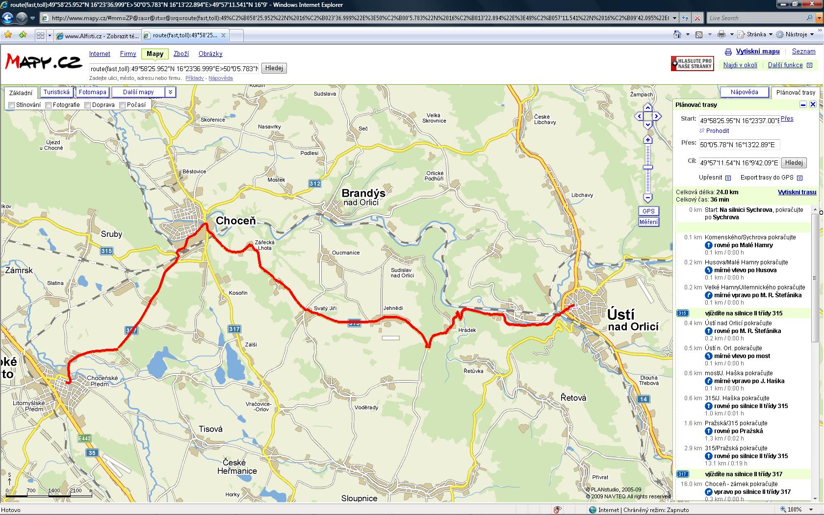 OK, můžem přes tu Choceň, aspoň to bude po lepší cestě.... Uvidíme jestli se sejdou ještě nějaké návrhy....