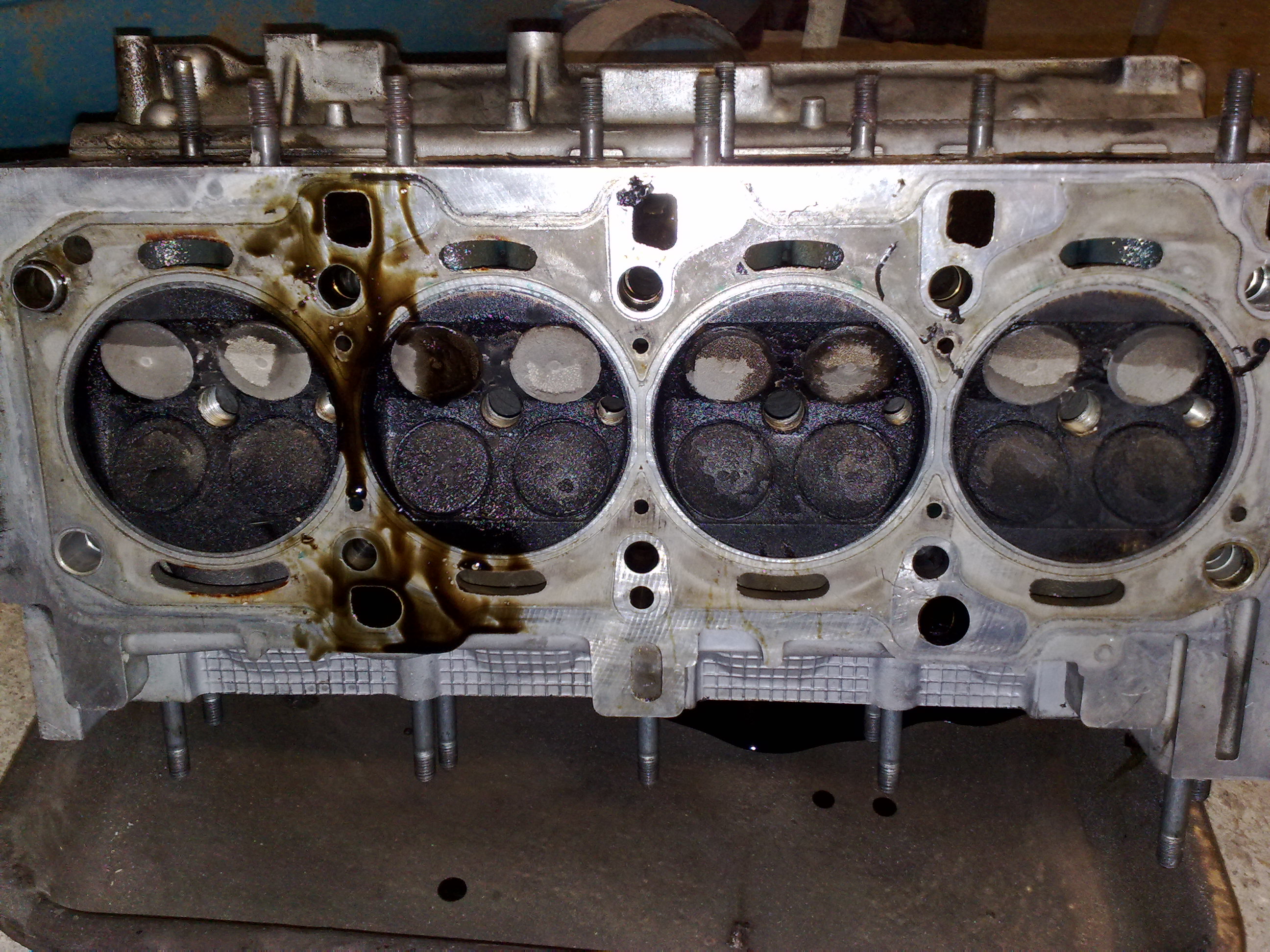 Je vidět, jak ten karbon je jen pod ventily, takže to opravdu bere olej skrz vodítka. Nech přelisovat nová vodítka a pokud budou stopky ventilů opotřebené, tak je vyměň taky. Ventily samozřejmě zabrousit tak, aby benzín nalitý do sacího/výfukového kanálu neprotekl skrz ventil do spal. prostoru.