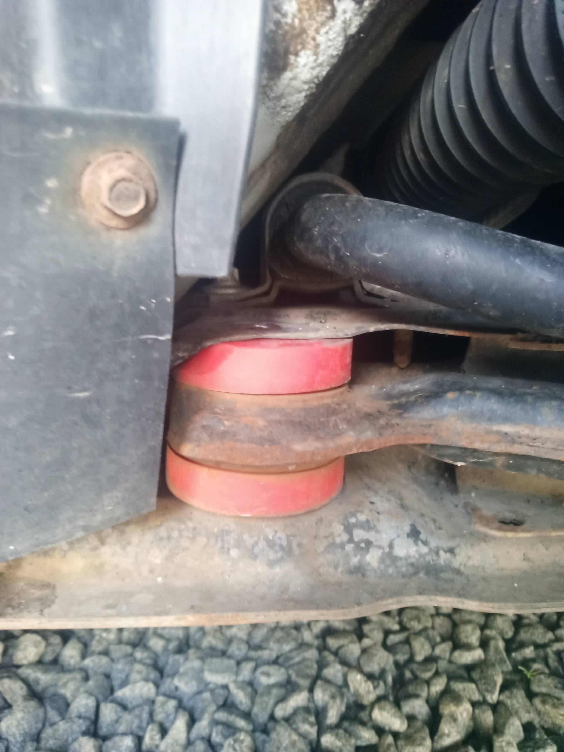 Při instalaci šroubu jsem zjistil, že mam vymačkanou díru v nápravnici, tudíš si asi nechám vyrobit silnější podložky, které do nápravnice vevařím, aby se toto už nedělo. Zřejmě tím, jak se to hejbalo -i když to bylo dotaženo na krev.., tak to byl i zdroj občasnejch podivnejch zvuků, který jsem nedovedl identifikovat odkud jdou..