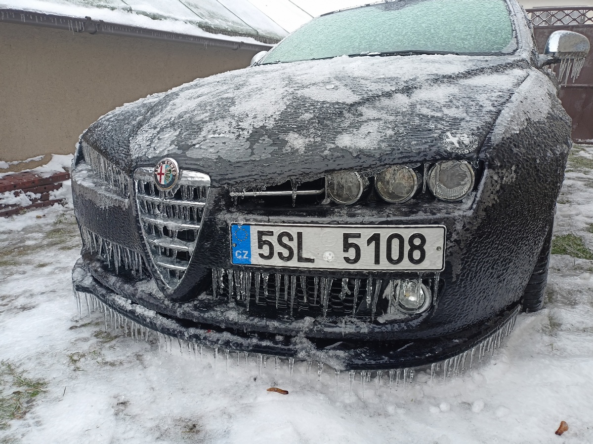 Jinak včera auto pod sněhem, a dneska pro změnu komplet naložený v ledu