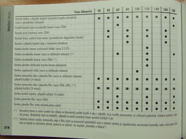 rozvody se dělají co 120tkm (alespoň u GT se stejným motorem) nebo co 5 let, viz ten obrázek. U 159 to ASI bude stejné (ostatně linkdy na návody ke stažení tady v sekci jsou.Britt píše:mám tam teď 106tis, najel jsem s tím jen 3tis, je to dovezené z Itálie, jeden majitel ale serviska není. V servisu jsem se na cenu neptal, máme tady v Hradci dokonce dva. Učím na škole, kde máme autodílny, ale nevím jestli zrovna Alfu jim svěřit, mám ještě Volvo V40, ale 12let staré v benzínu a to mě běžně dělají. S Alfou nevím, je to úplně něco jiného...