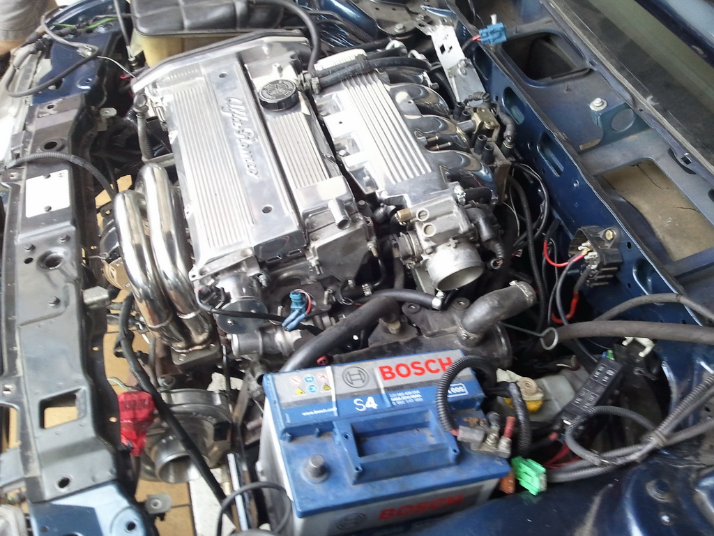 Co se týče montáže motoru, tak nebyl absolutně žádný problém.Všechny držáky z Coupe pasovaly i na Alfu. poloosy s kloubama pasovaly po obroušení "kroužků" na ABS které má Alfa nemá takže tam taky nebyl problém. Akorát je problém (jak jsem psal vyše) se světlou výškou která se blíží původni světlé výšce když byl v autě TS motor a to ještě není vše nastrojené... Proto jsem se rozhodl pro plně stavitelný podvozek.