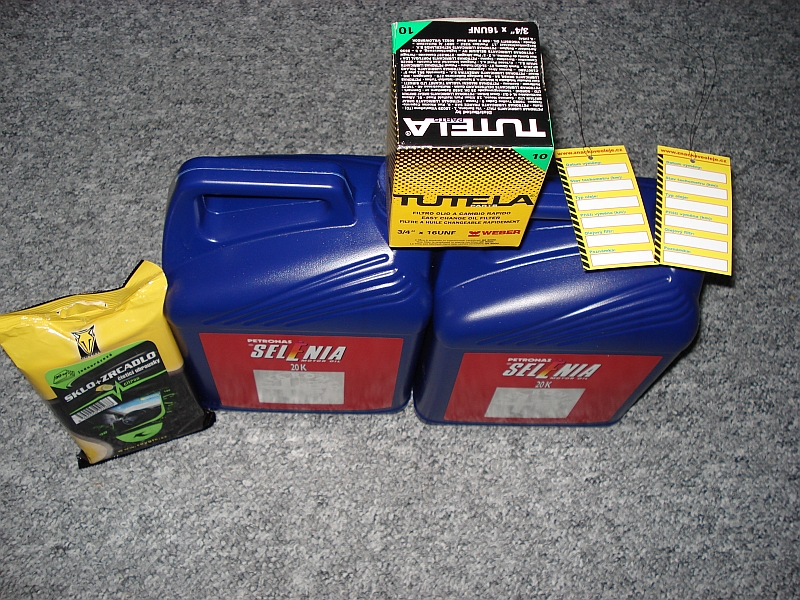 Tak jsem dneska dostal od www.znackoveoleje.cz 2x 5L Selenie 20K 10W-40 s filtrem a dárečkem, tímto mu mockrát díky, Alfinka dostane nový olej!