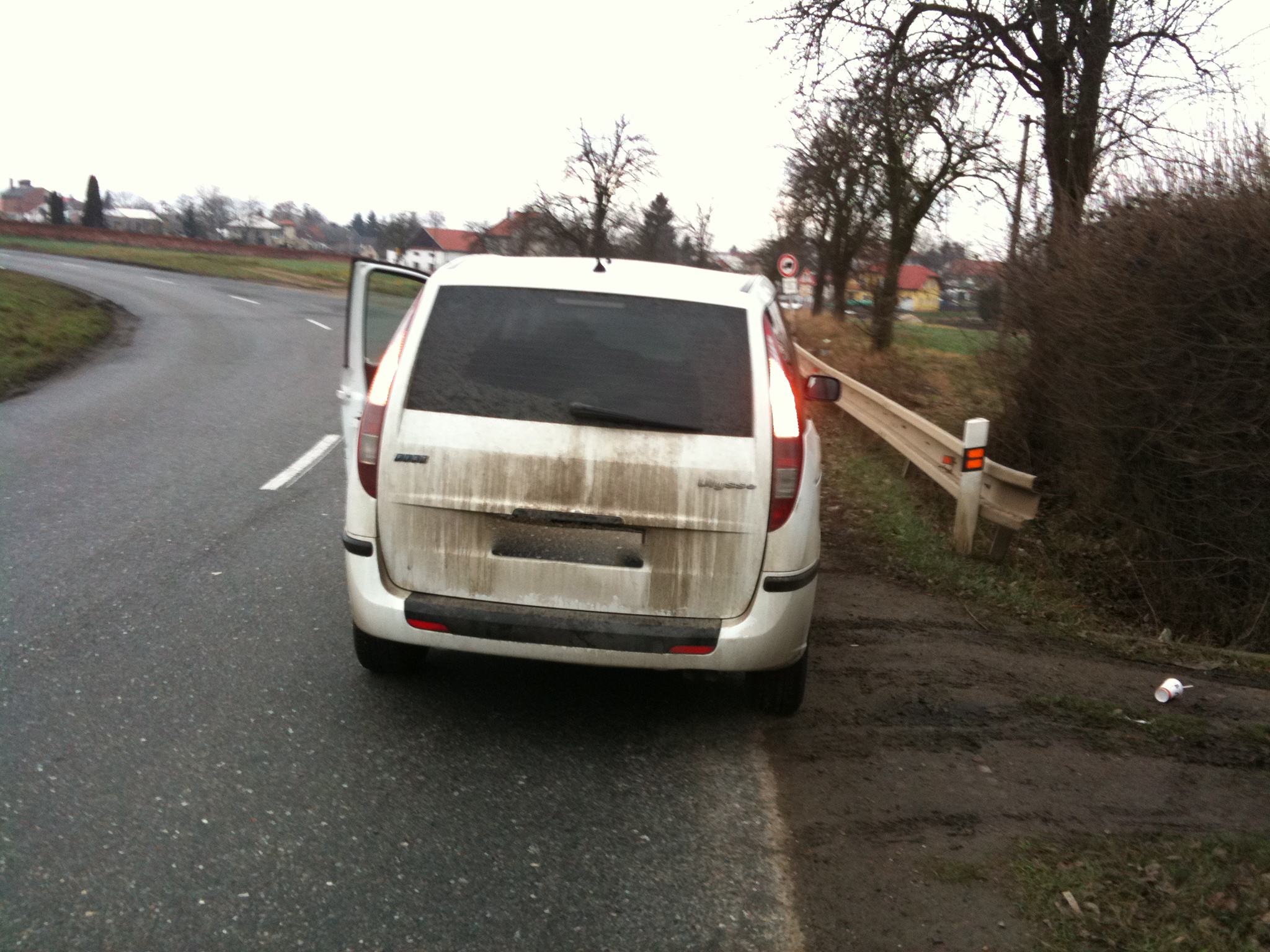 Koukám, že si to šlehnul do Fiata. Co to bylo zač, že má pětidíry kola? Pole dobře zoraný, měl si kliku, že tam nebyla nějaká hluboká škarpa...