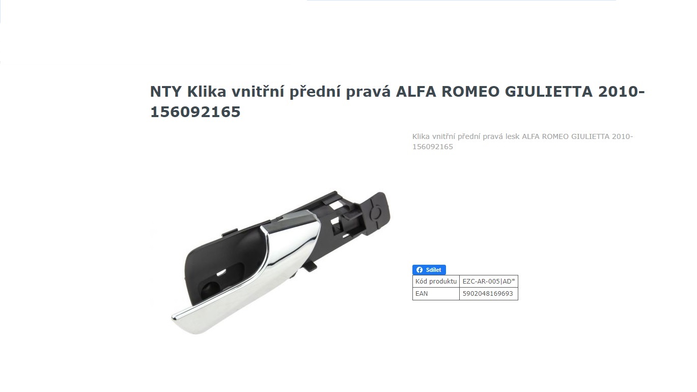Tak jsem se dočkal- vnitřní klika u spolujezdce zase "klikuje" a mé otvírání dveří ( byt asi galantní k manželce) skončilo . Klička se dlouhodobě připravovala na výměnu neboť před delší dobou se začal odlupovat kovový povlak a to v nejblbějším místě - na vrchní hraně. Tak jsem to přelepil hliníkovou samolepící páskou..bezpečnější - k pořezání prstů o hranu nemohlo dojít....vizuálně nic-moc. A cca před třemi nedělemi odmítla fungovat úplně. Stejně byl čas a km k výměně motorového oleje - tak šup s tím do servisu. A byl jsem hned upozorněn, že mění kličku s celým nějakým plastem s cenovkou cca 15000.-Kč - ale když si přinesu novou kličku tak tuto mi zamontují. Vše proběhlo dle dohody a zatím vše funguje.