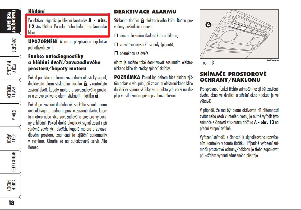 keď máte na prednom strednom svietidle toto tlačítko alarmu, tak máte vo výbave alarm bez toho tlačítka tam alarm nemáte.