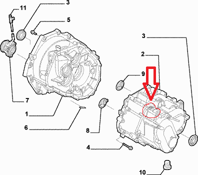 Olej do převodovky se nalévá přes čidlo zpátečky. Vyndáš baterku, držák na baterku no a pak jediný dráty co vedou do převodovky vedou k tomu čidlu... To vyšroubuješ a naliješ 2,9litru. (GM)