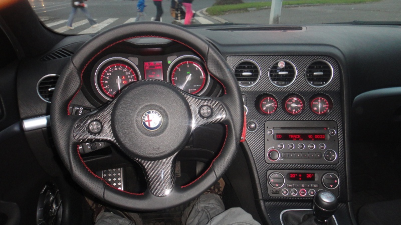 Karbon v autě nemusím, ale tady v kombinaci s červenými budíky to dává pěknej celek