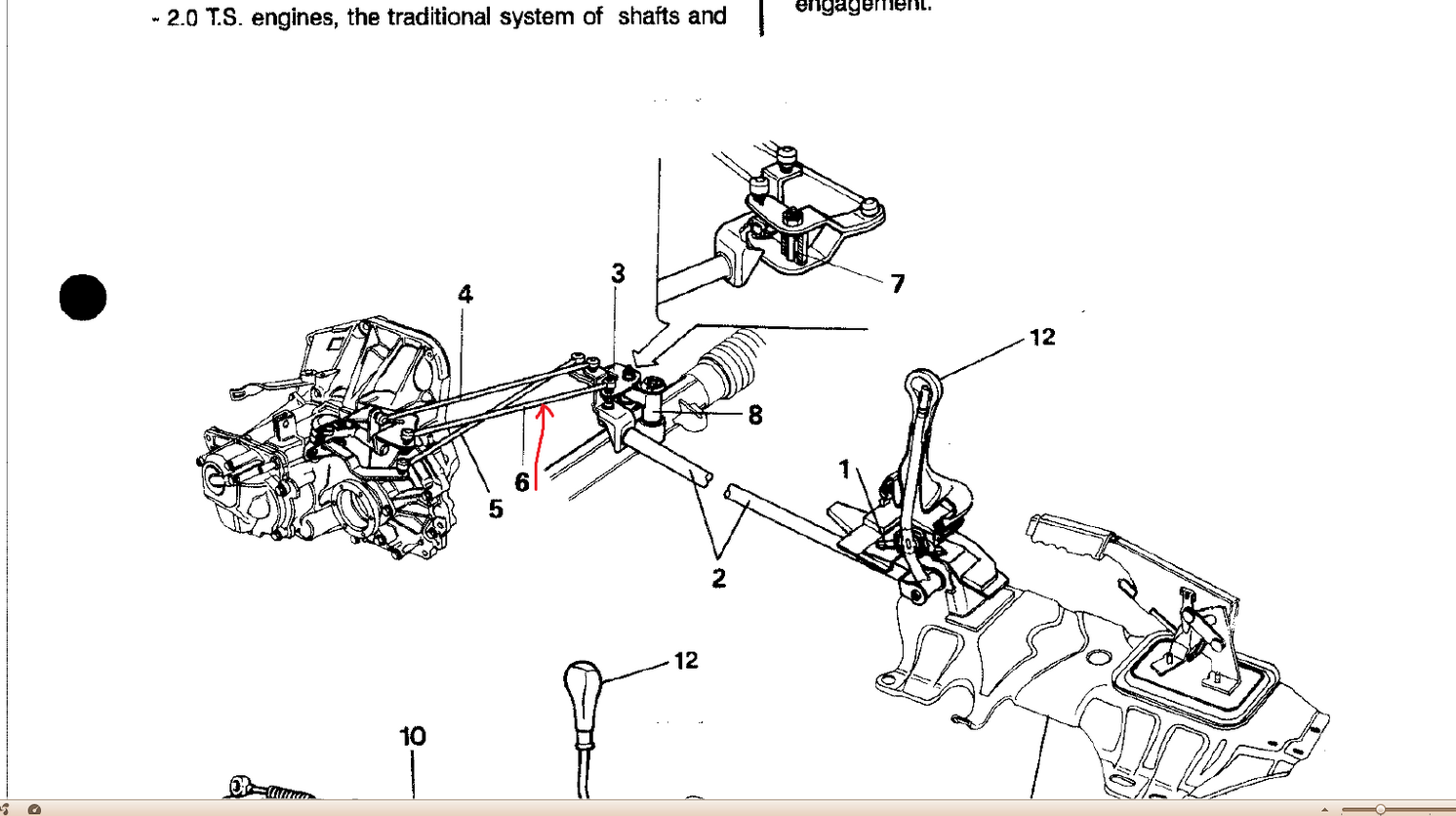 No pěkný, já chtěl původně vyměnit všechny, když už kvůli tomu půjde převodovka ven, abych to pak už nemusel dělat, kdyby zase nějaký ruplo, ale když to nejde, tak aspoň to jedno, je to to číslo 6 s tou červenou šipkou, je to to táhlo, který drží tu řadící tyč pořád ve stejný poloze.