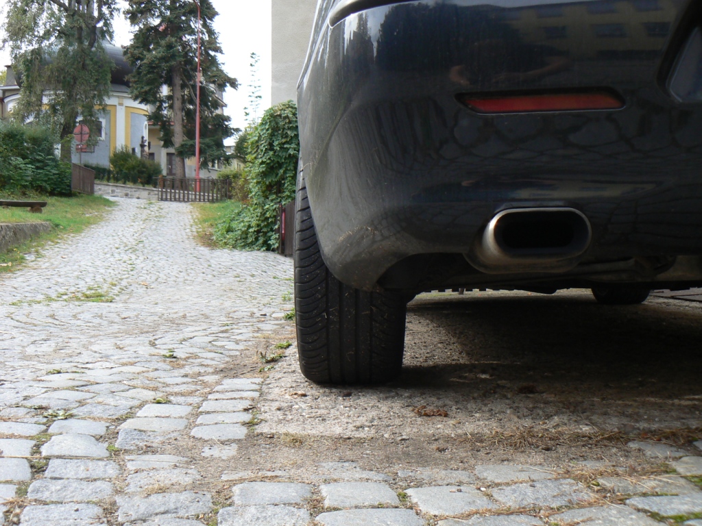 - největší kosmetickou vadou je samozřejmě křídlo, ale jinak když si přiblížíš fotky z boku auta, tak jsou na přechodech u prahů vidět světlý fleky. To je popraskanej vrchní lak, ale nezasahuje to až pod lak. Jinak drobrý,