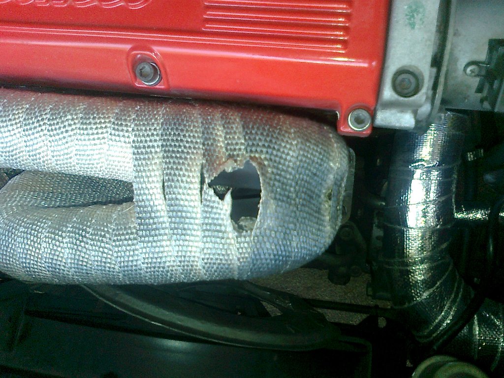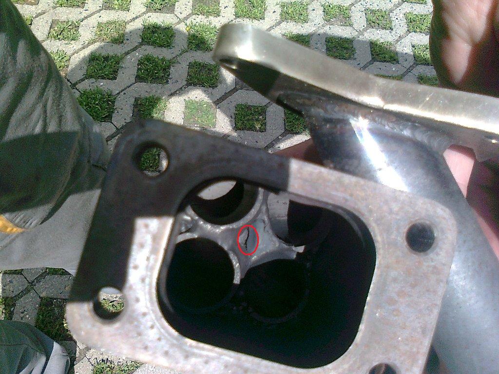 S účastí Q4 v Drhlenech to vypadá bledě, měl jsem podezření že je na svodech menší trhlinka v místě sváru kde se jednotlivé svody zbíhají do přírubi k turbu ale přez izolaci nebylo nic moc vidět a nějak se to dále neprojevilo,i po sprintech bylo vše ok,až bohužel včera večer při tlaku turba 1.8baru tím pádem mnohem větší teplota svodů větší proudění spalit no prostě i díky mojí hlouposti je tam trhlina jako prase
