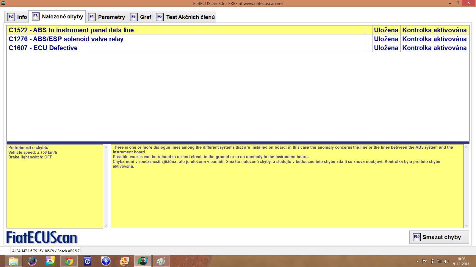 se pokusím napíchnout jednotku ABS a snad budu chytřejší