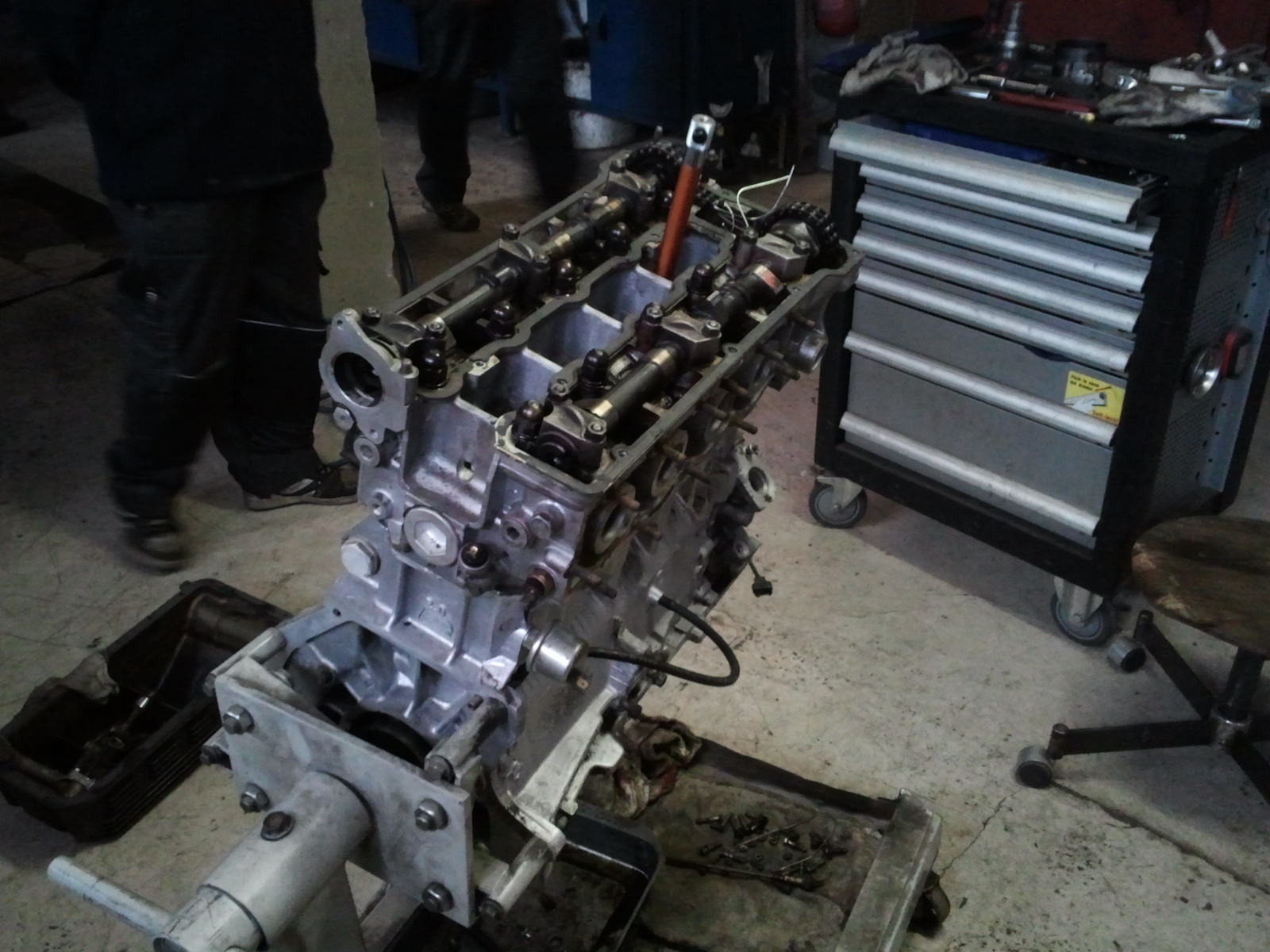 Něco se děje:-):-). Motor už je z 90%kompletní a když to dobře dopadne... Podívá se brzo na silnici... Ale pak začne další boj s odstrojováním 156... A také stříkání vybledlých lišt okolo auta....