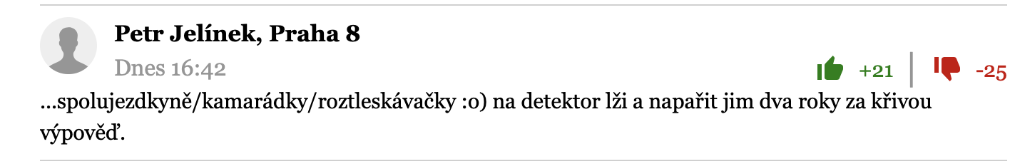 Pan Jelinek ma jasno - spolujezdkyne zavrit na 2 roky. 21 lidi to vidi stejne.