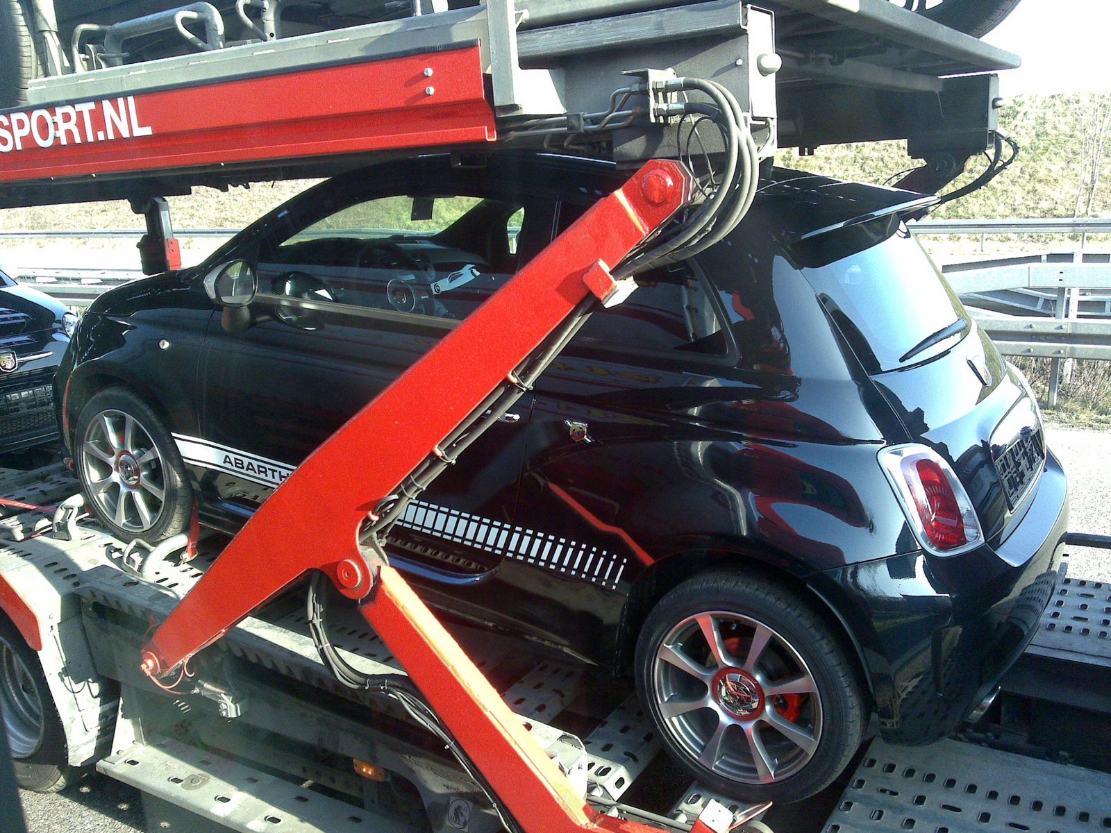 Tenhle týden jsem jel zase do Švýcar, a někde na německý dálnici jsem v protějším směru potkal nějakou odtahovku a naloženýho měl Montreala, byl červenej, vypadal zachovale, ale zrovna jsem řídil a než jsem nahmatal mobil, tak projel, bylo to moje první osobní setkání s tímhle krasavcem, ale bohužel bez památky, tak jsem aspoň v koloně před Baselem cvaknul nějakýho holanďana, měl naloženou jednu Audinu, tři Infinity a čtyři tyhle krasavce od Abarthu