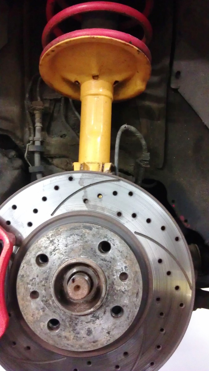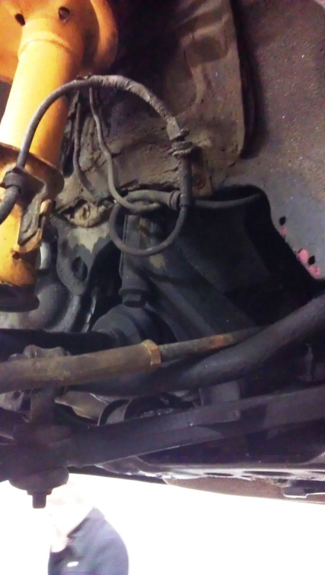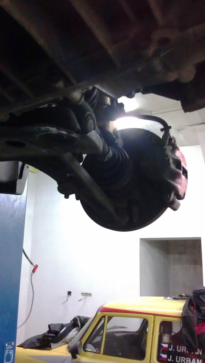 Opravdu v rychlosti vyfocených pár fotek ze stádia sundávání nápravy. Plánovali jsme to udělat bez shození, ale jeden šroub nejde na řízení povolit, tak musí jít dolů..