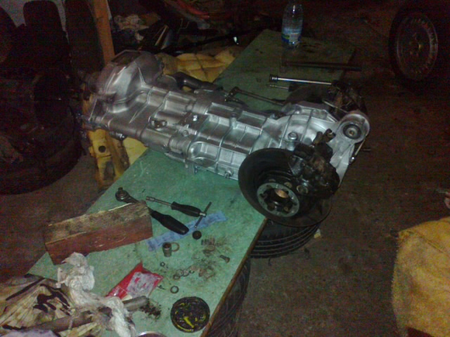tentokrát jsou vyzkoušel jestli motor půjde vyndat bez demontáže kardanu a šel (byly tam popraskané HSky, tak nebylo co ztratit)