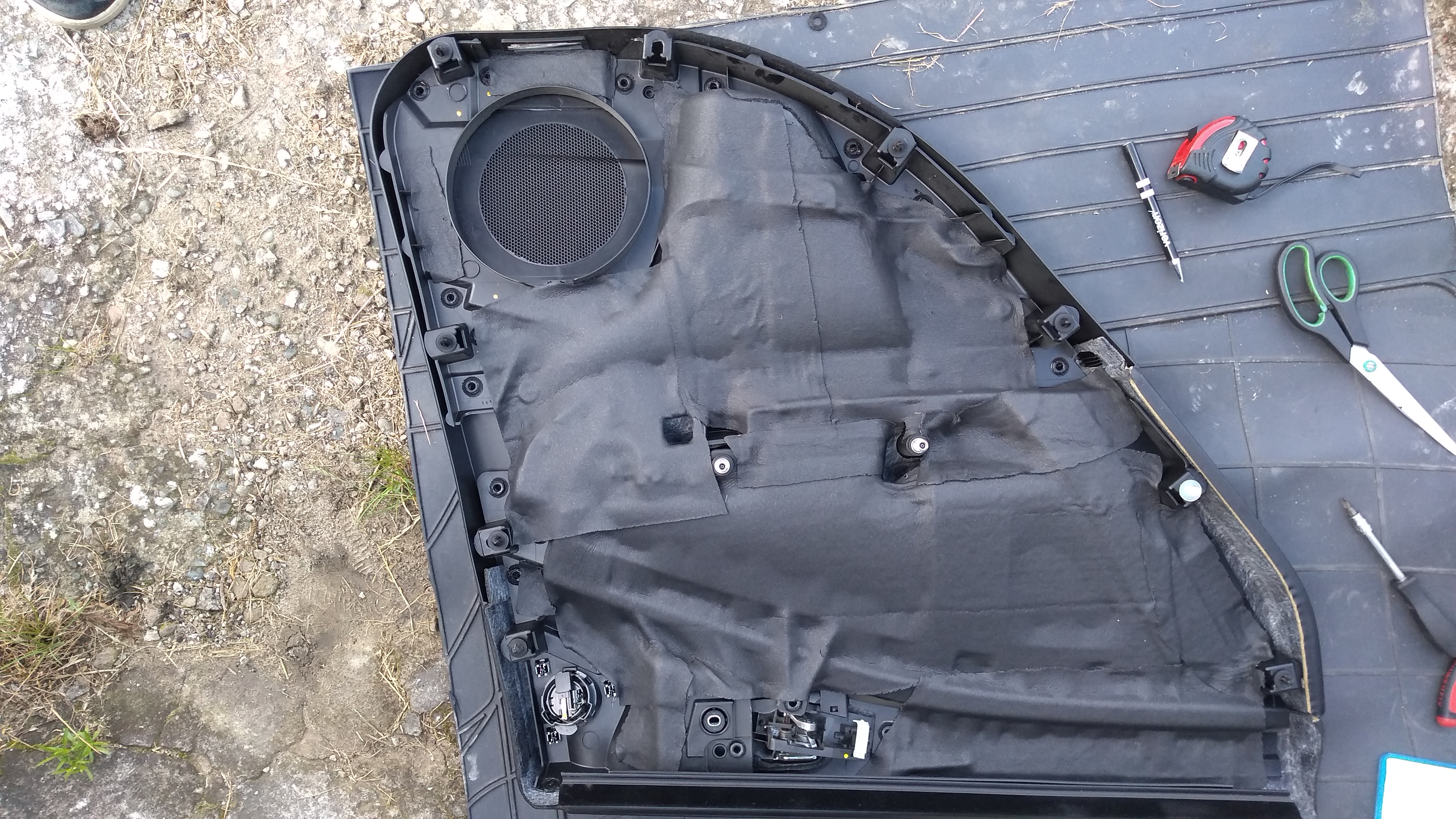 Využil jsem antivibrační materiál (vrstva butylu a hliníku) AB2 (na dveře a v předních dveřích) a tlumící pěnu K3S ze strany tapece.