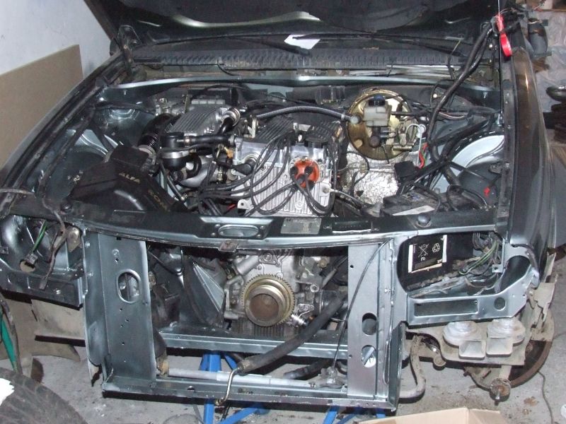 Alfa má udělaný sání,už na autě, pozapojovaný benzínový hadice, k úspěšnýmu startu tomu chybí zapalování a chlazení. Zbytek je podle mého nejlepšího svědomí a vědomí ok a hotov.