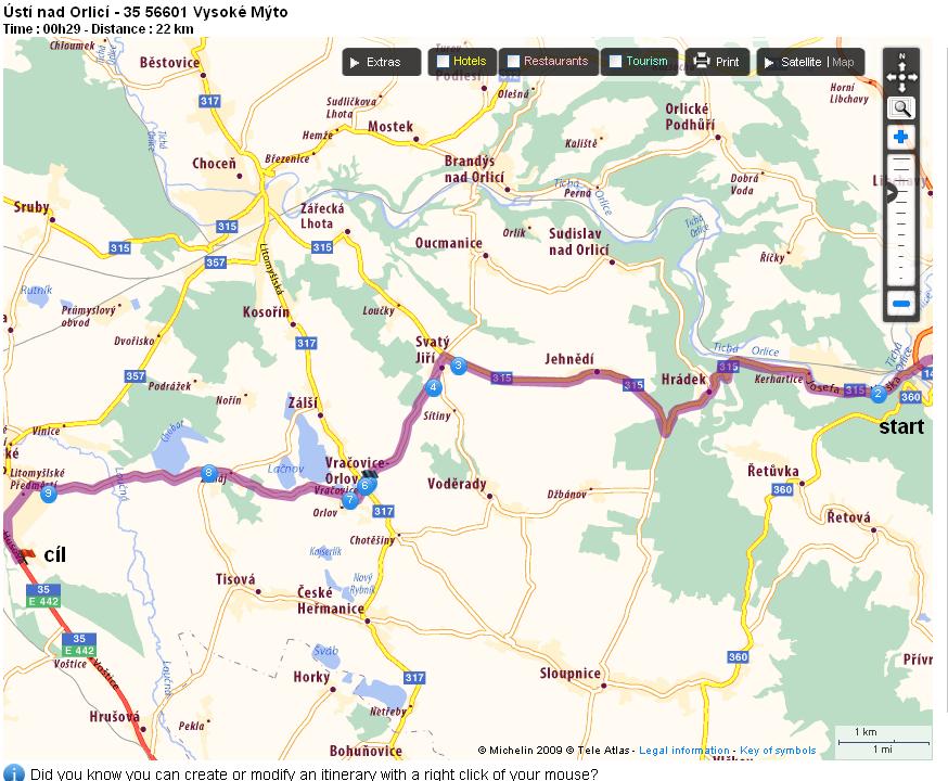 OK, můžem přes tu Choceň, aspoň to bude po lepší cestě.... Uvidíme jestli se sejdou ještě nějaké návrhy....