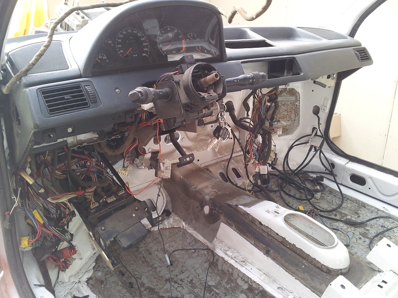 Tak ještě po fotce z motoráku a kokpitu. Ještě, kdyby se někomu doma válel použitý a použitelný pravý lanovod ruční brzdy, tak rád udělám popelnici na vyhození