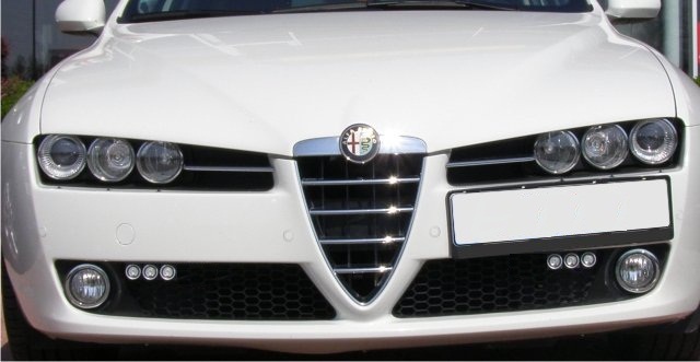 Dovolil jsem si malou úpravičku denních světel pro 159 od Milotecu. Hoši mají asi zatím jediné světla, které bych tam možná zkousl a nevypadalo by to jako tesco-tuzing, ale mají tam těch kuliček trochu moc, tak jsem si říkal co to trochu virtuálně poladit. Né, že by to design vyloženě zlepšovalo (to asi ani nejde), ale pokud bych hodně jezdil a chtěl mít denní světla a zároveň mlhovky, tak totok je pro mě asi jediná cesta: