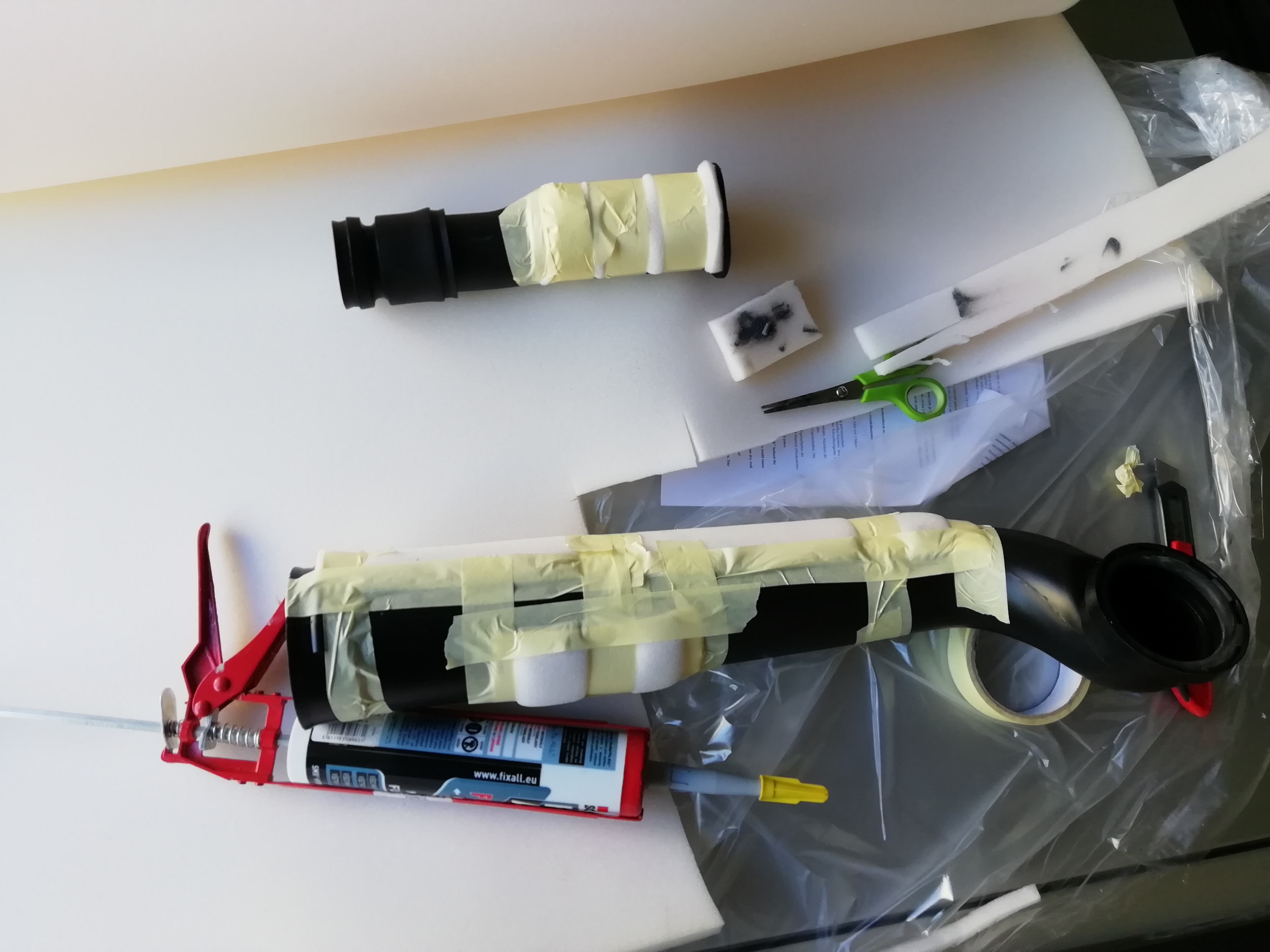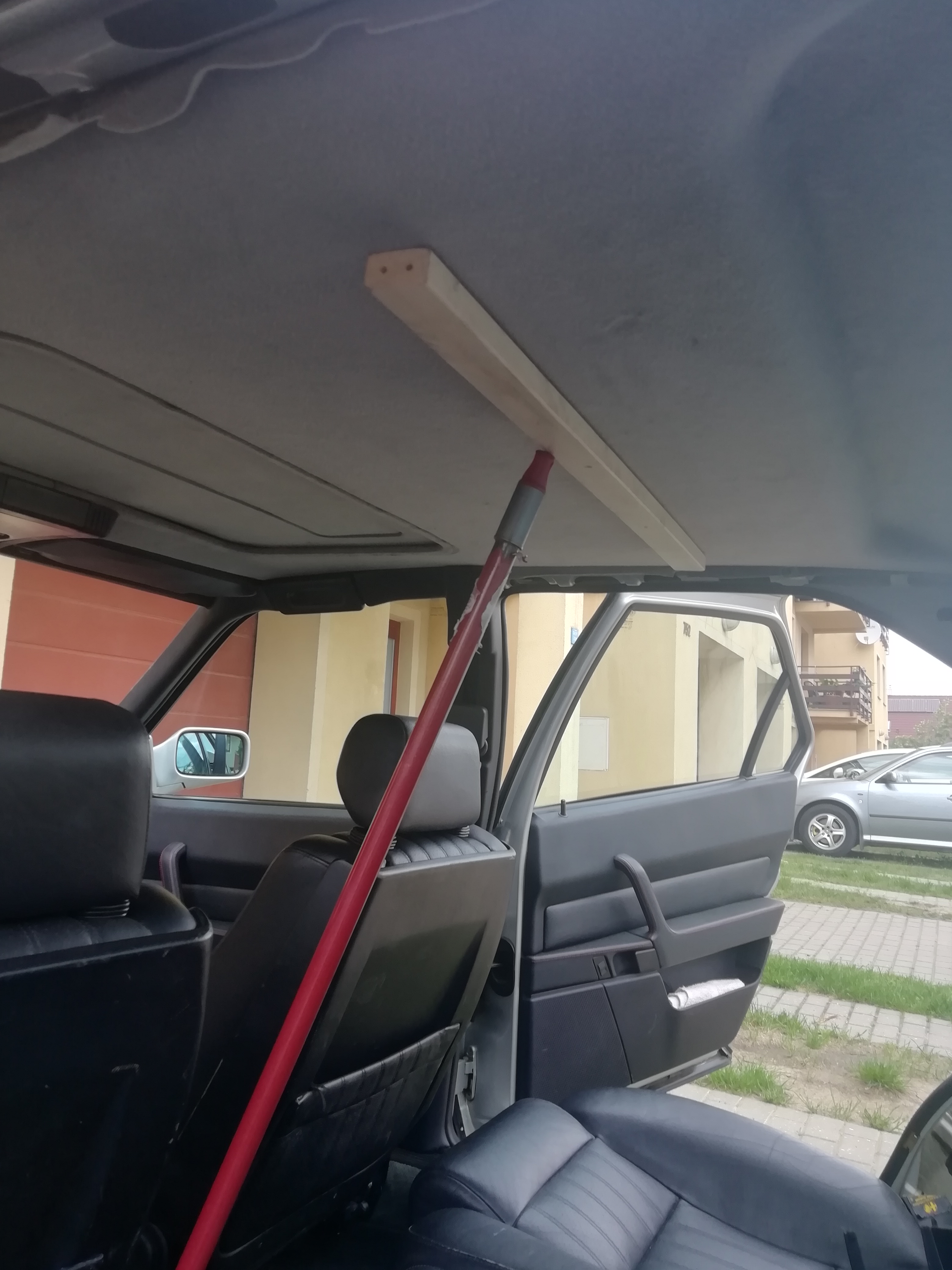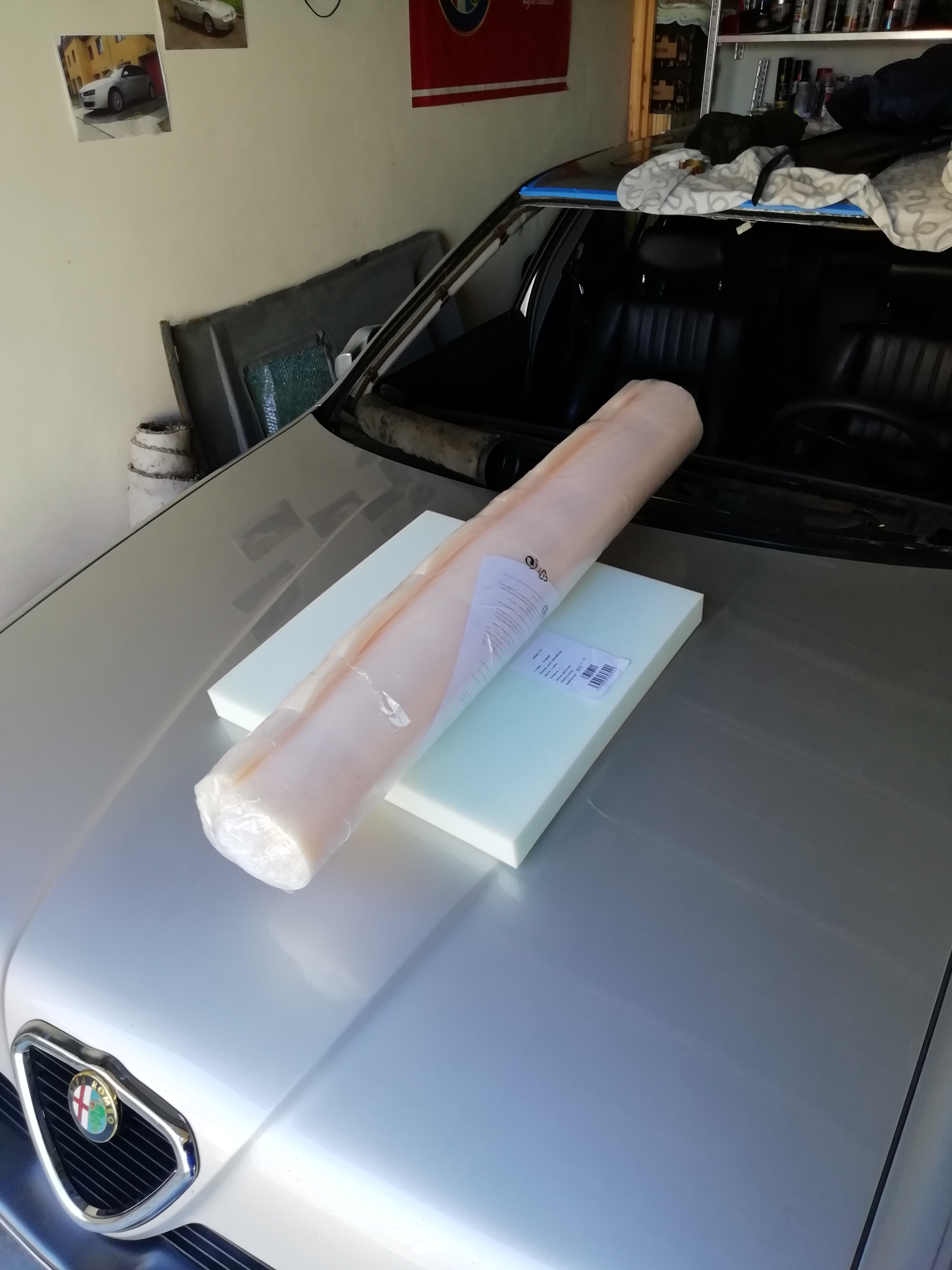 V rámci příprav na vyříznutí čelního skla jsem demontoval stropnici a konečně ji opravil pořádně. Tzn. celou látku serval, odstranil drolící se molitan, vypral a znovu nalepil. Využiju toho i k další (už druhé) výměně šíbru, který mám jiný slíbený a bude snad zítra.