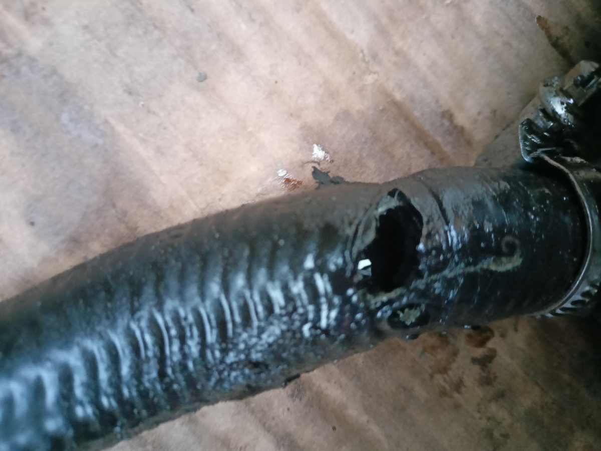 Jo a jak jsem dělal ten altík, downpipe k zadním svodům jsem měl venku, tu k předním jsem nechal na autě a jen s uhnul, když jsem potřeboval, a ona se mi odvděčila tím, že začal lehce foukat vlnovec, tak jsem ho zatím jen zalepil a budu čekat, až to vzdá úplně