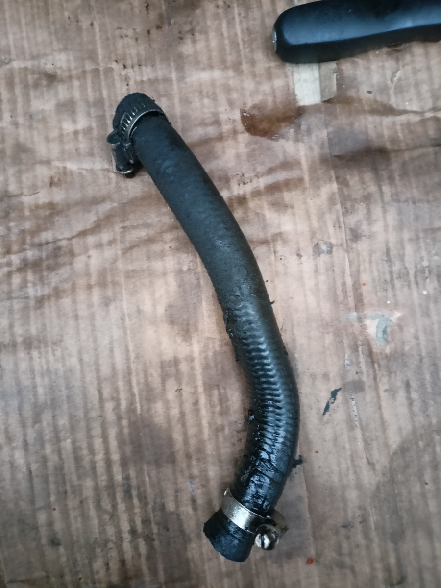Minulou neděli bylo konečně trošku přívětivý počasí, tak jsem pod to vlezl a zjistil závadu - díra v hadičce, co jde od řízení do trubky k levýmu kolu, samozřejmě přístup úplně na ho...o (teda když se ti nechce sundavat nápravnice